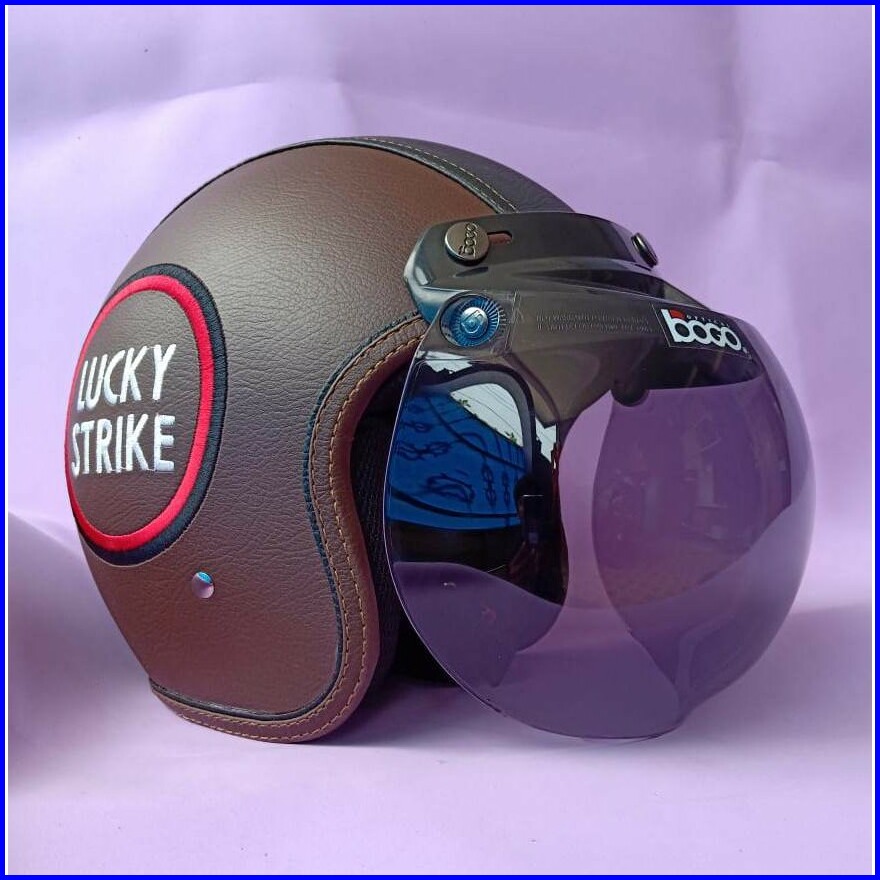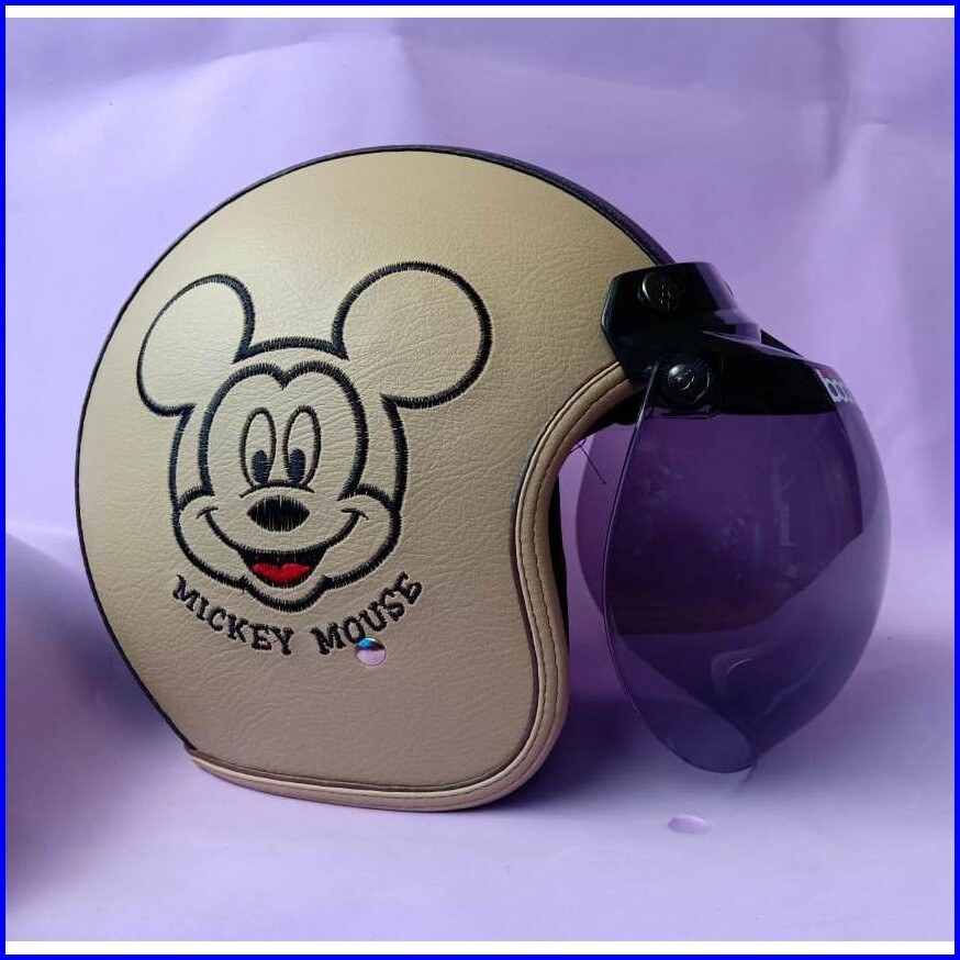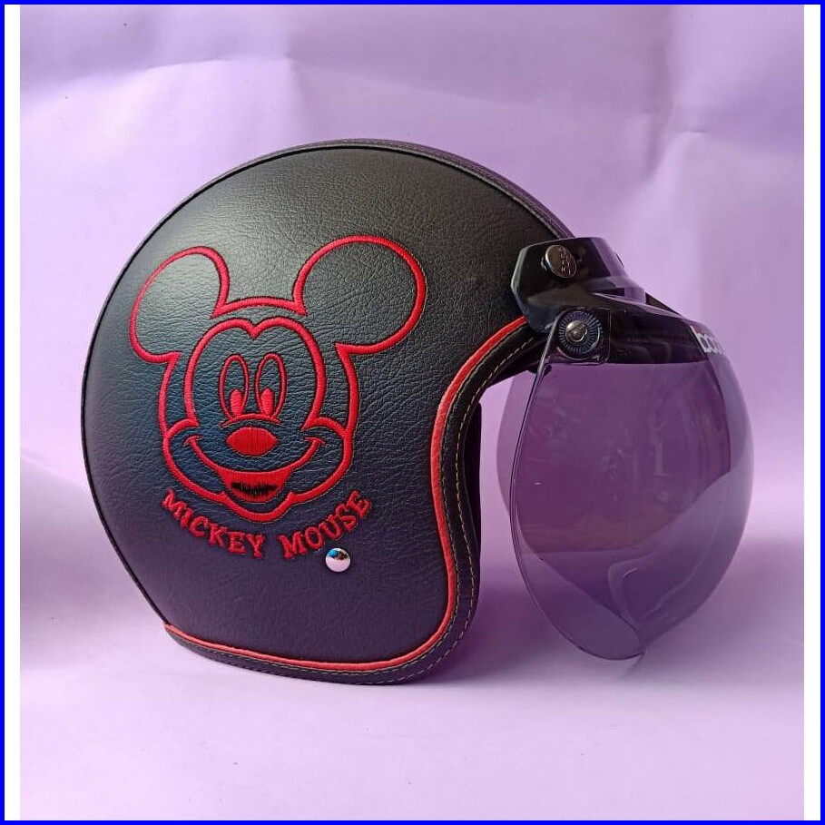 Helm Bogo Retro Kulit Dewasa Bordir Mickey