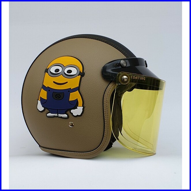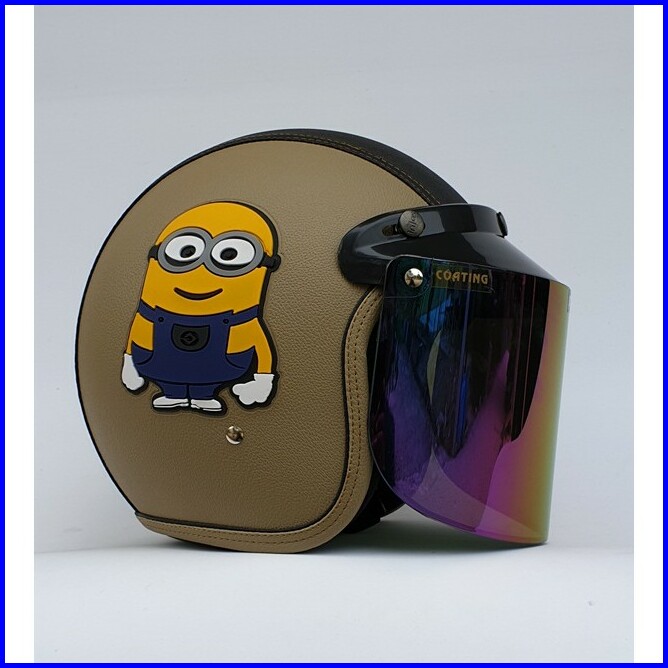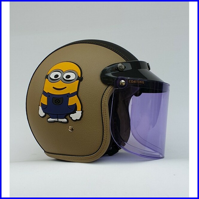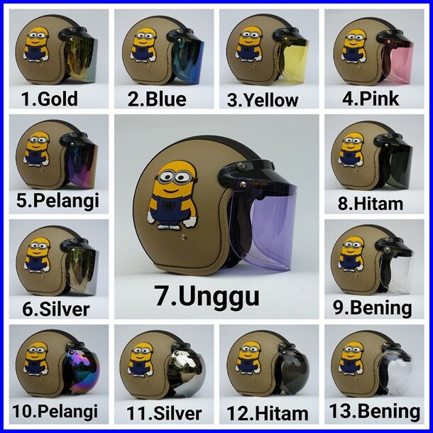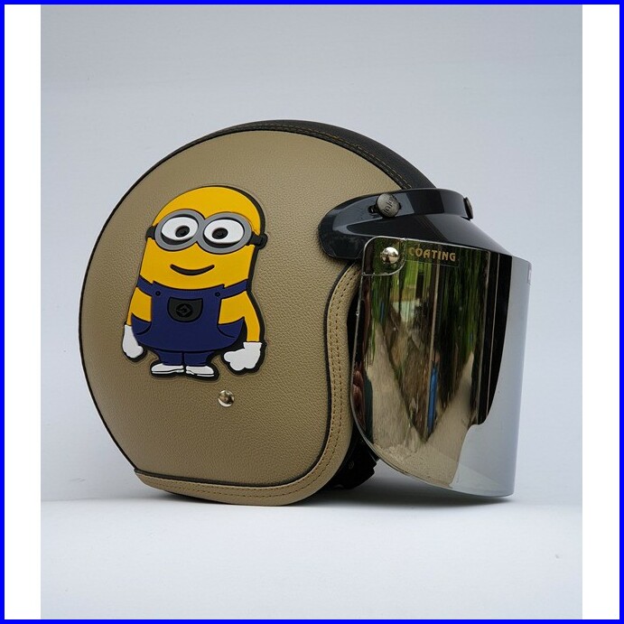 Helm Bogo Kulit Dewasa Warna Crem Hitam Ful Leher Kaca Datar Cembung Sudah Coating