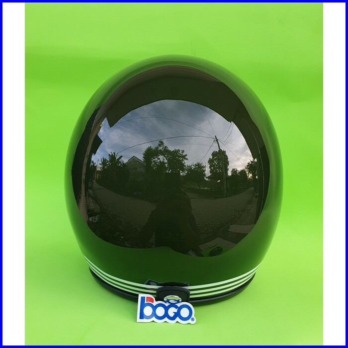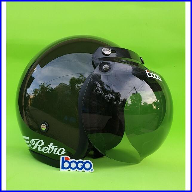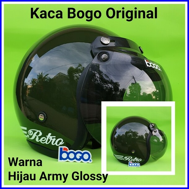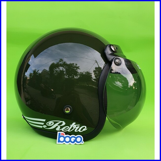 Helm Bogo Retro Dewasa Warna Hijau Army Glossy Dengan Kaca Bogo Original