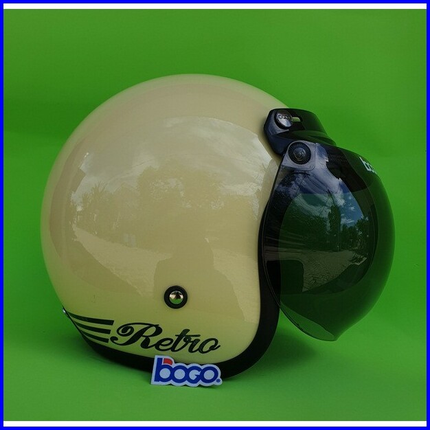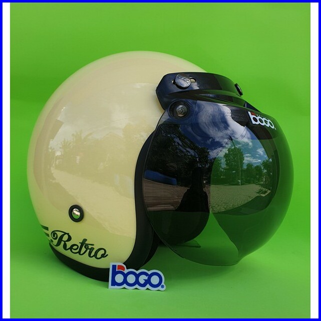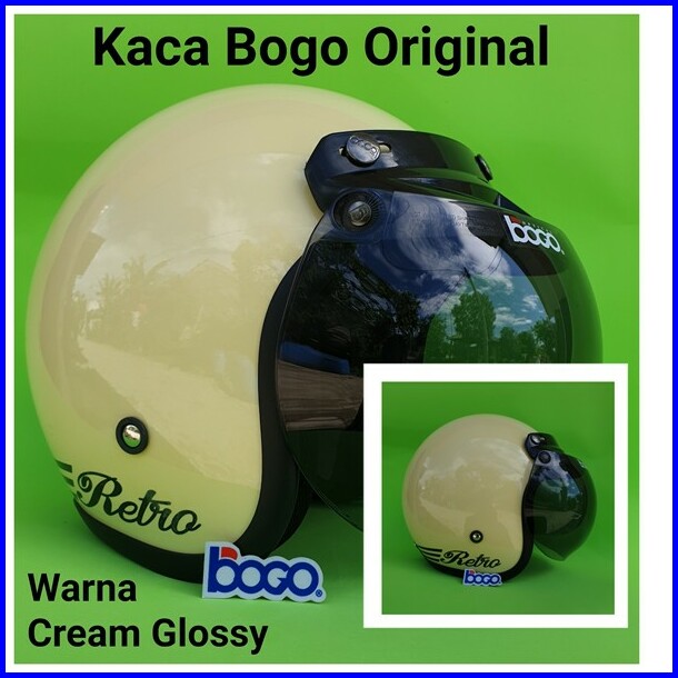 Helm Bogo Retro Dewasa Warna Cream Glossy Dengan Kaca Bogo Original