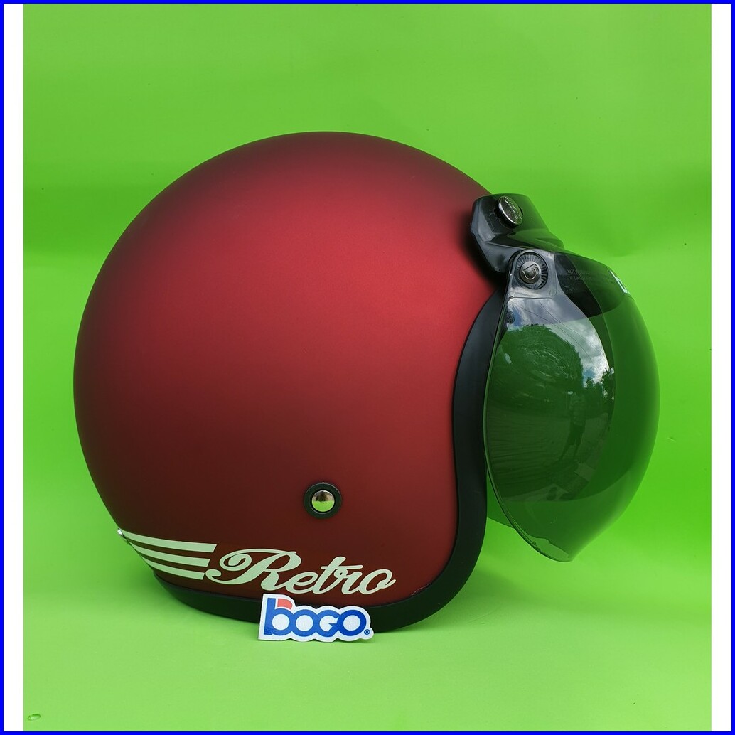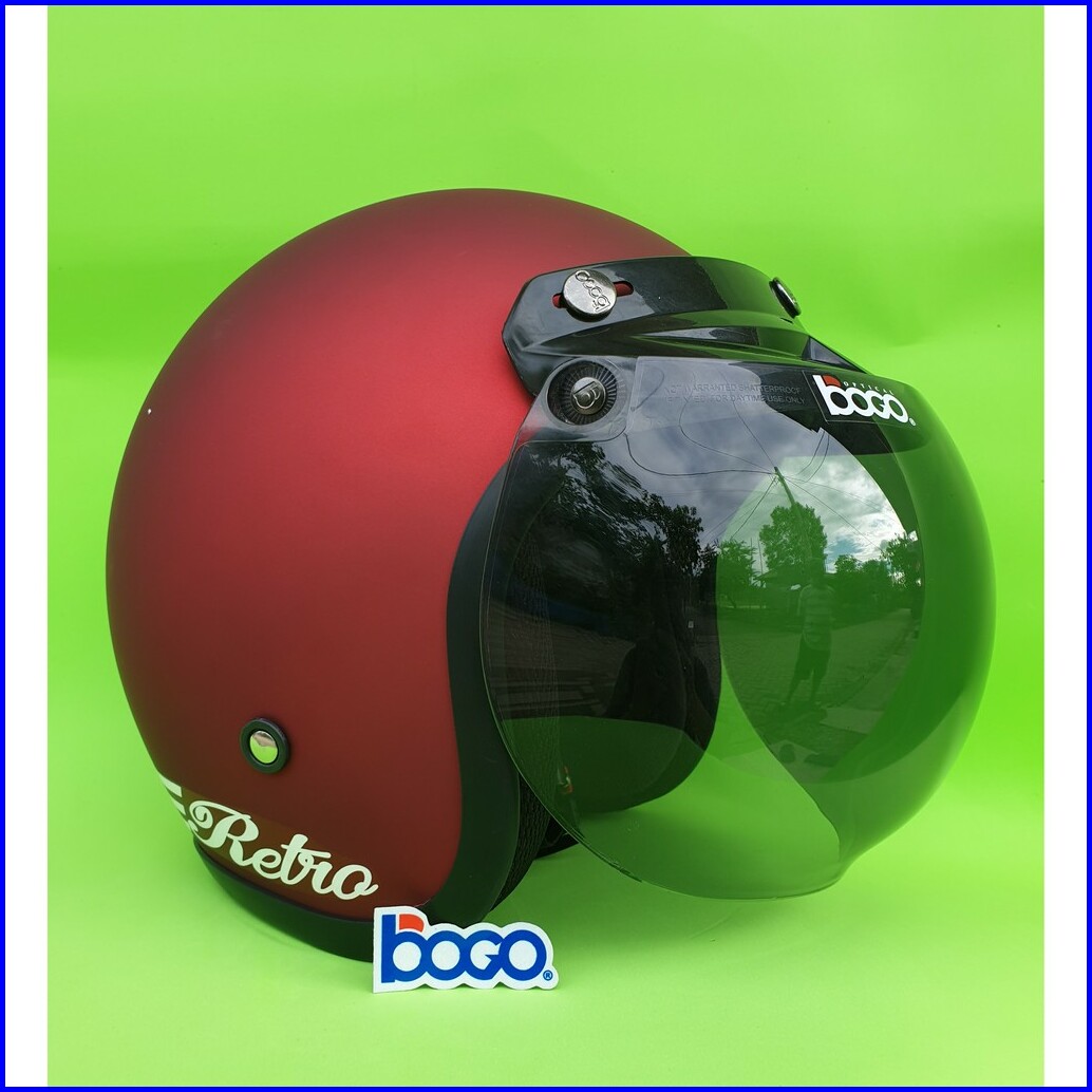 Helm Retro Dewasa Warna Merah Doff Dengan Kaca Bogo Original