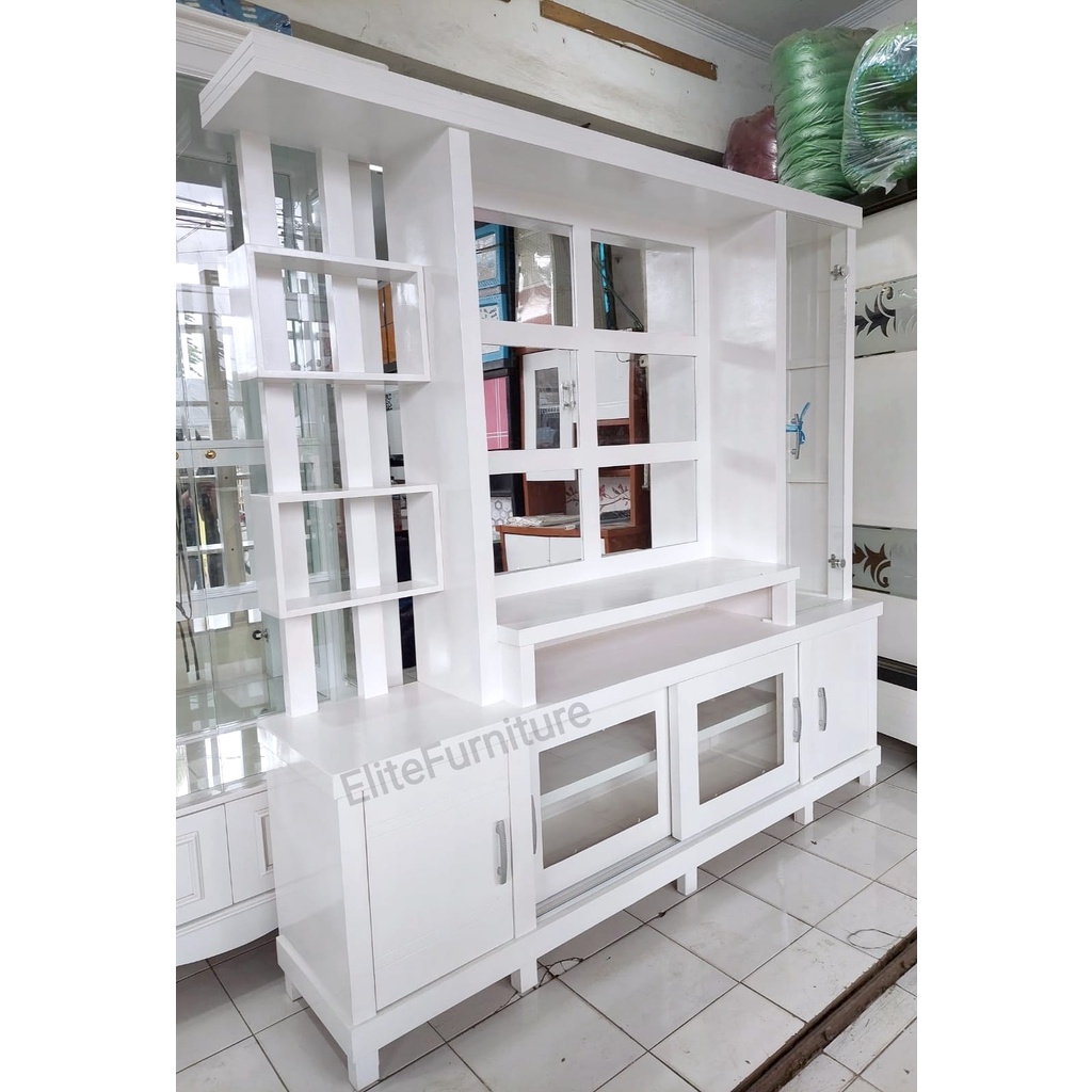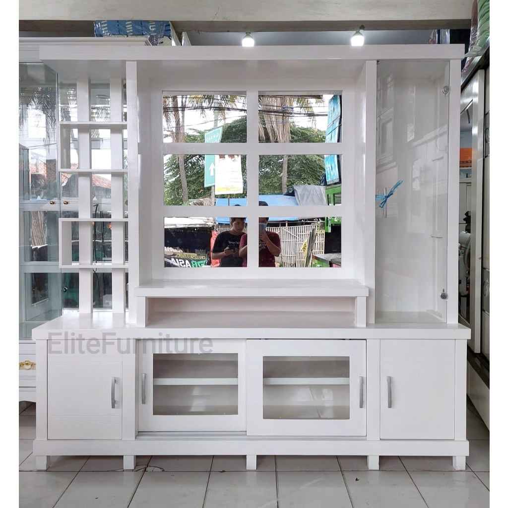 Buffet Partisi TV 43in JUMBO / Lemari Rak Tv/ Bufet TV Ruangan / Partisi Ruang Tamu / Partisi Minimalis Multriplek Putih