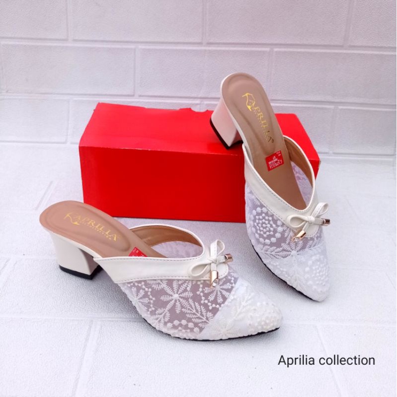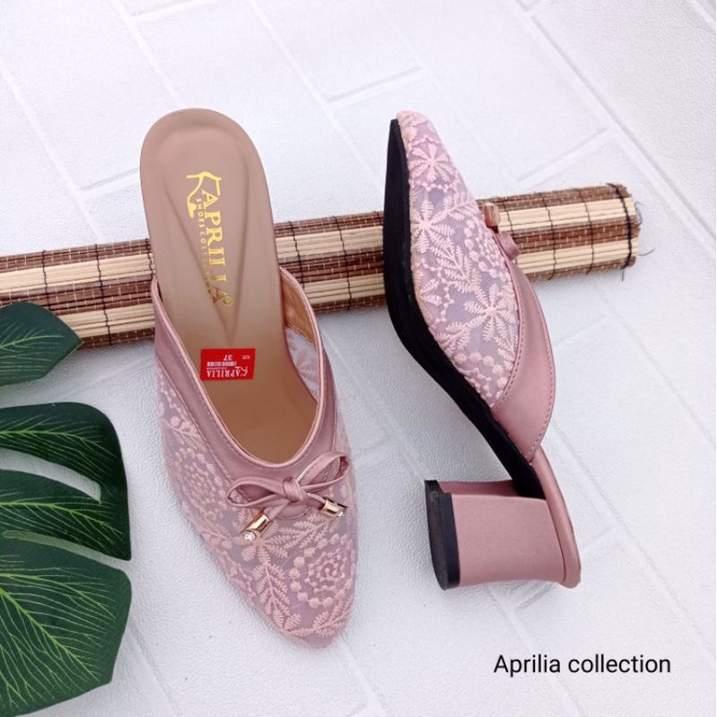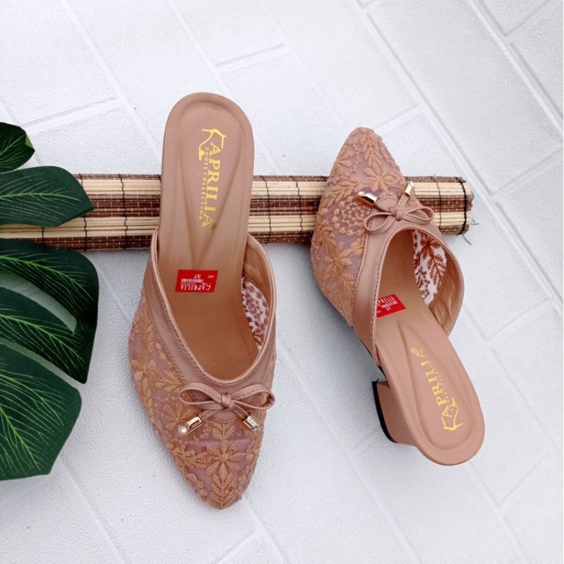 Heels pesta wanita hak tahu 5cm terbaru kekinian/sendal selop brukat pengantin wanita/sandal pesta kondangan perempuan b