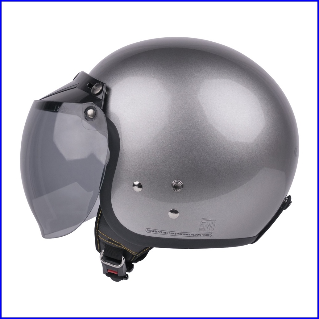 Cargloss Cfm Retro Visor Hebo Smoke Helm Half Face - Silver Met Glossy