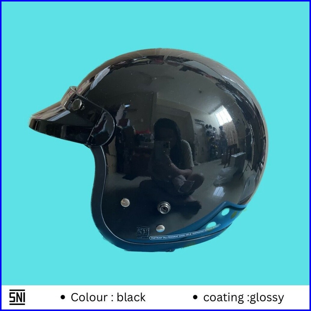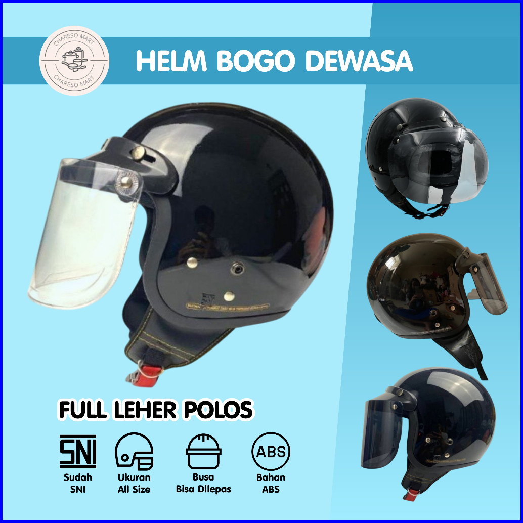 Helm Bogo Dewasa Sni Full Leher Polos Wanita Pria Carglos Black Gloss
