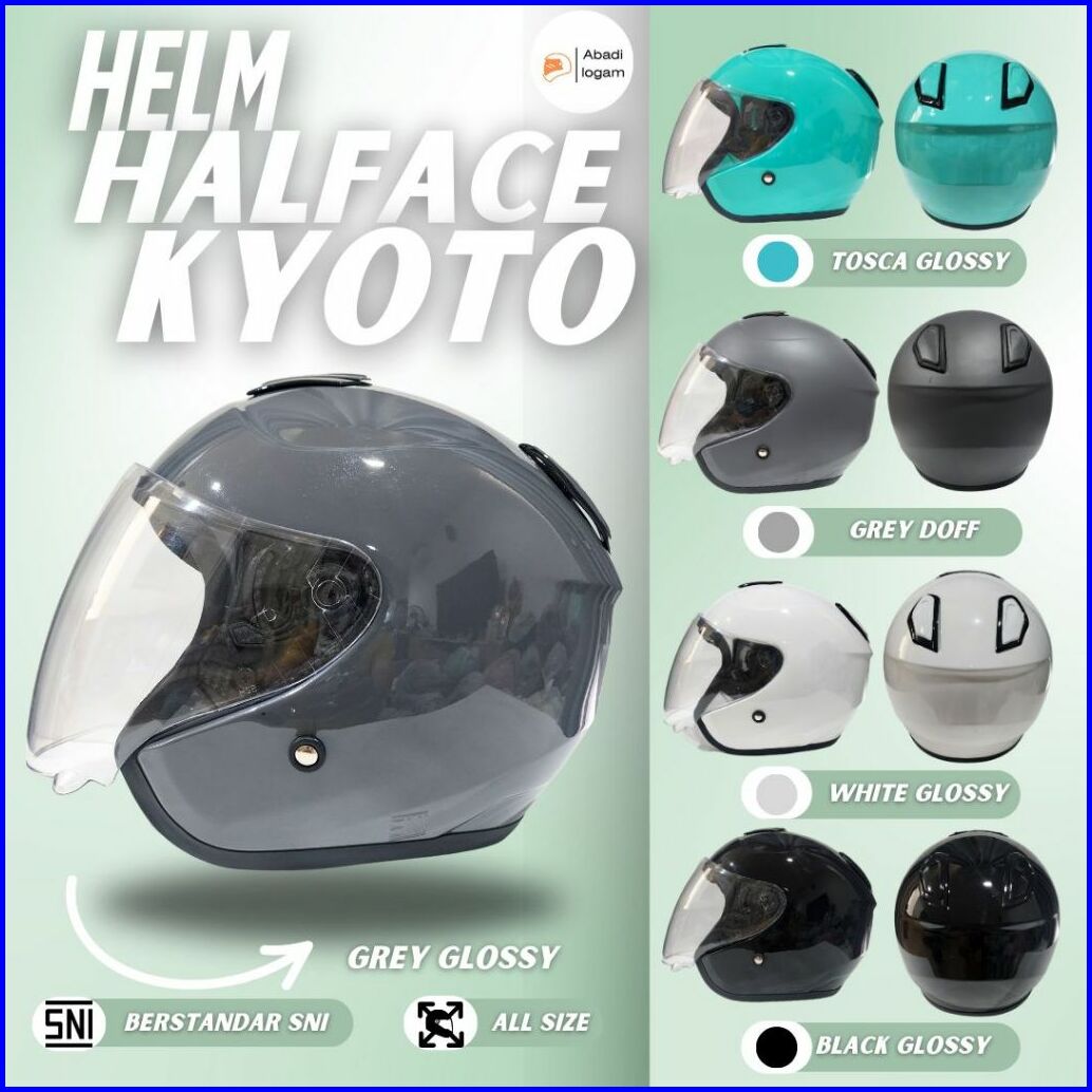 Helm Bogo Kyoto By Hds Half Face Klasik Pria Wanita Dewasa Motif Grey