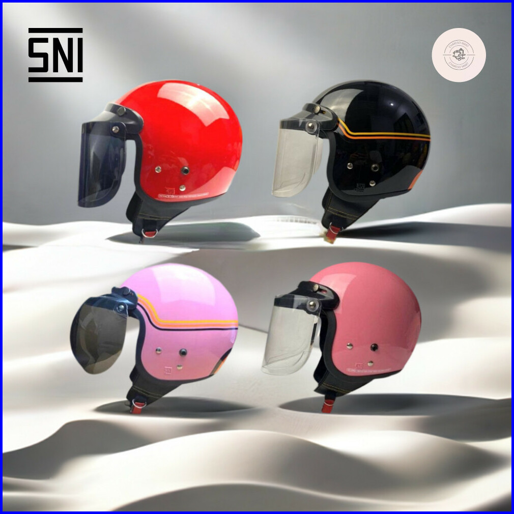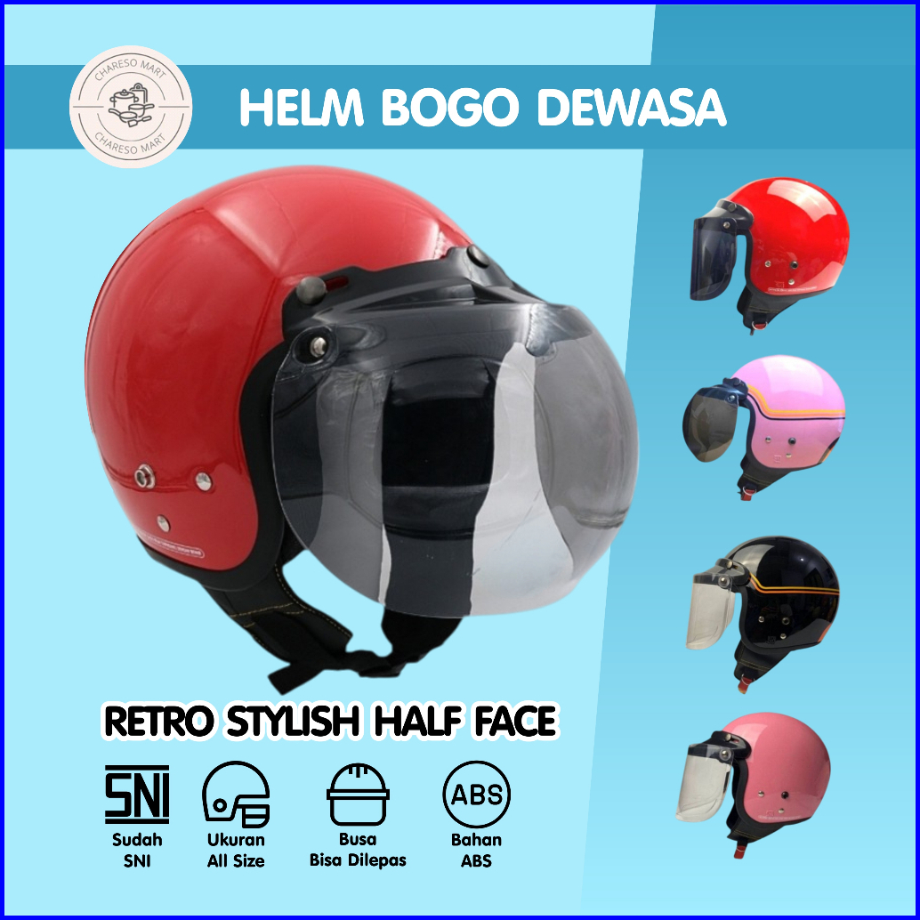 Helm Bogo Classic Dewasa Sni Hds Helmet Ori Half Face Retro Stylish Pria Wanita Hijab