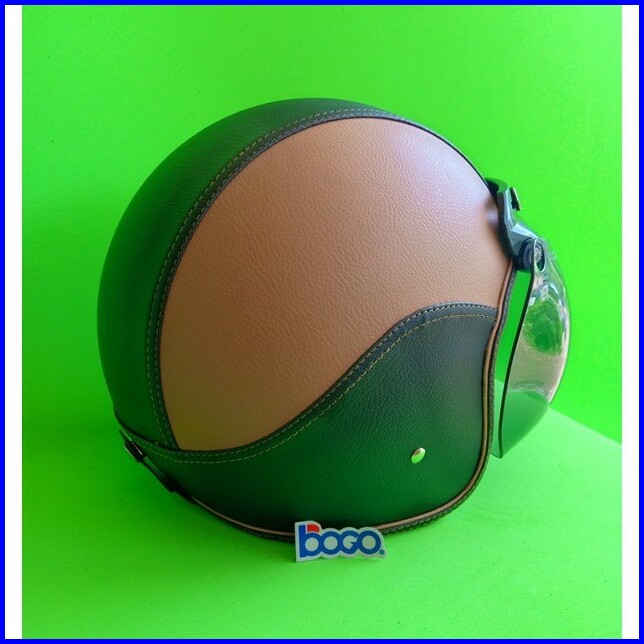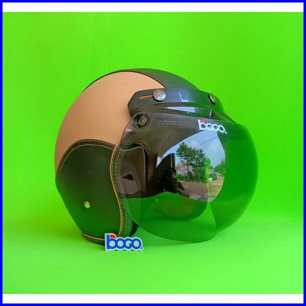 Helm Bogo Retro Kulit Dewasa Kaca Bogo Original Warna Bawah Hitam Atas Coklat Muda