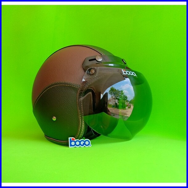 Helm Bogo Retro Kulit Dewasa Kaca Bogo Original Warna Bawah Hitam Atas Coklat