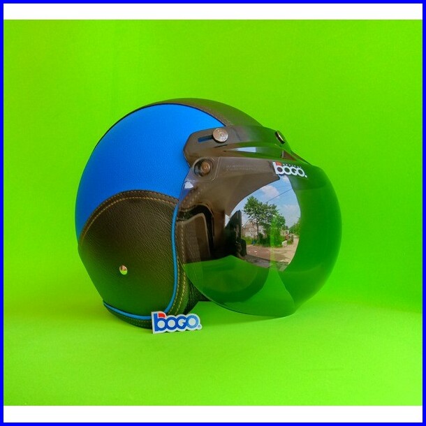 Helm Bogo Retro Kulit Dewasa Kaca Bogo Original Hitam Biru Tua