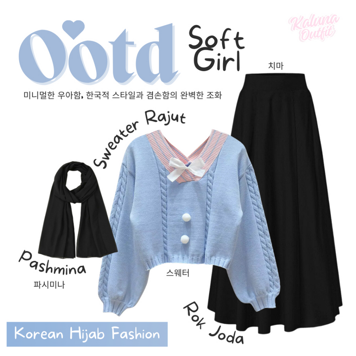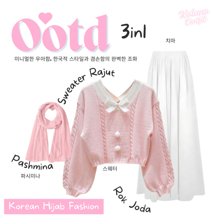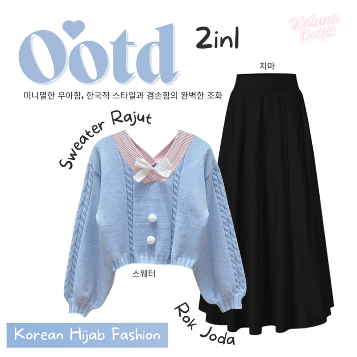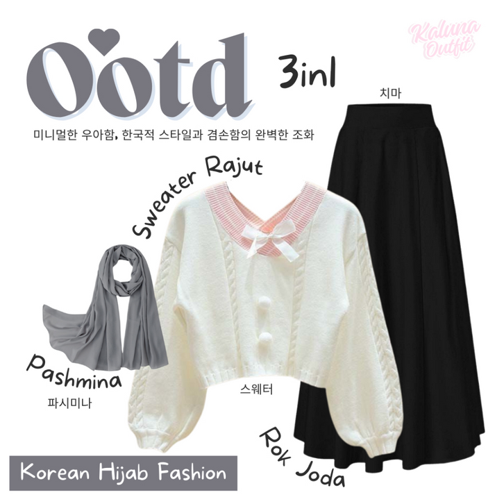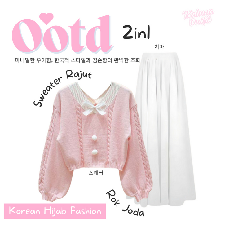 One Set Wanita Kekinian Korean Style Pashmina Sweater Rok Panjang Setelan Baju Wanita Outfit Remaja Lebaran Bukber KO1C