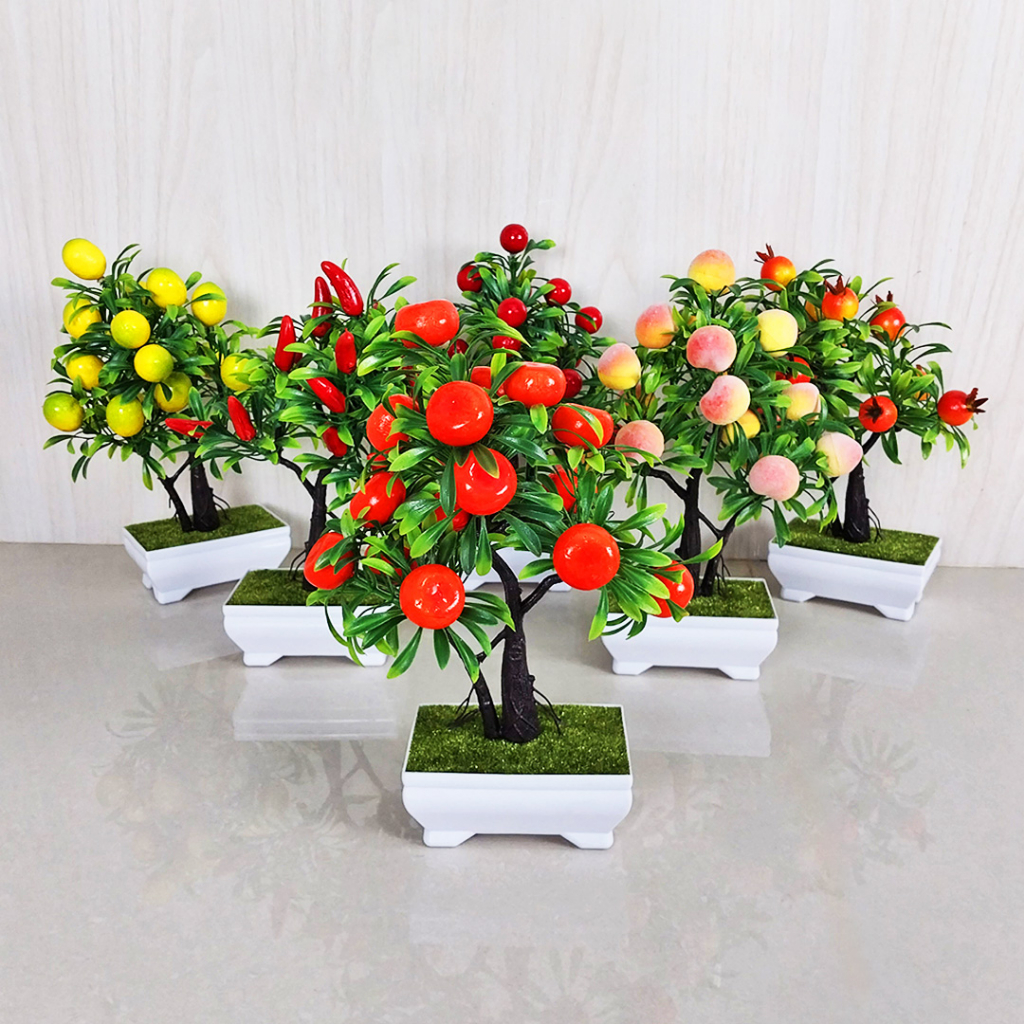 Bunga Plastik Hiasan Pot Bonsai Buah Pajangan Ruang Tamu PBP11