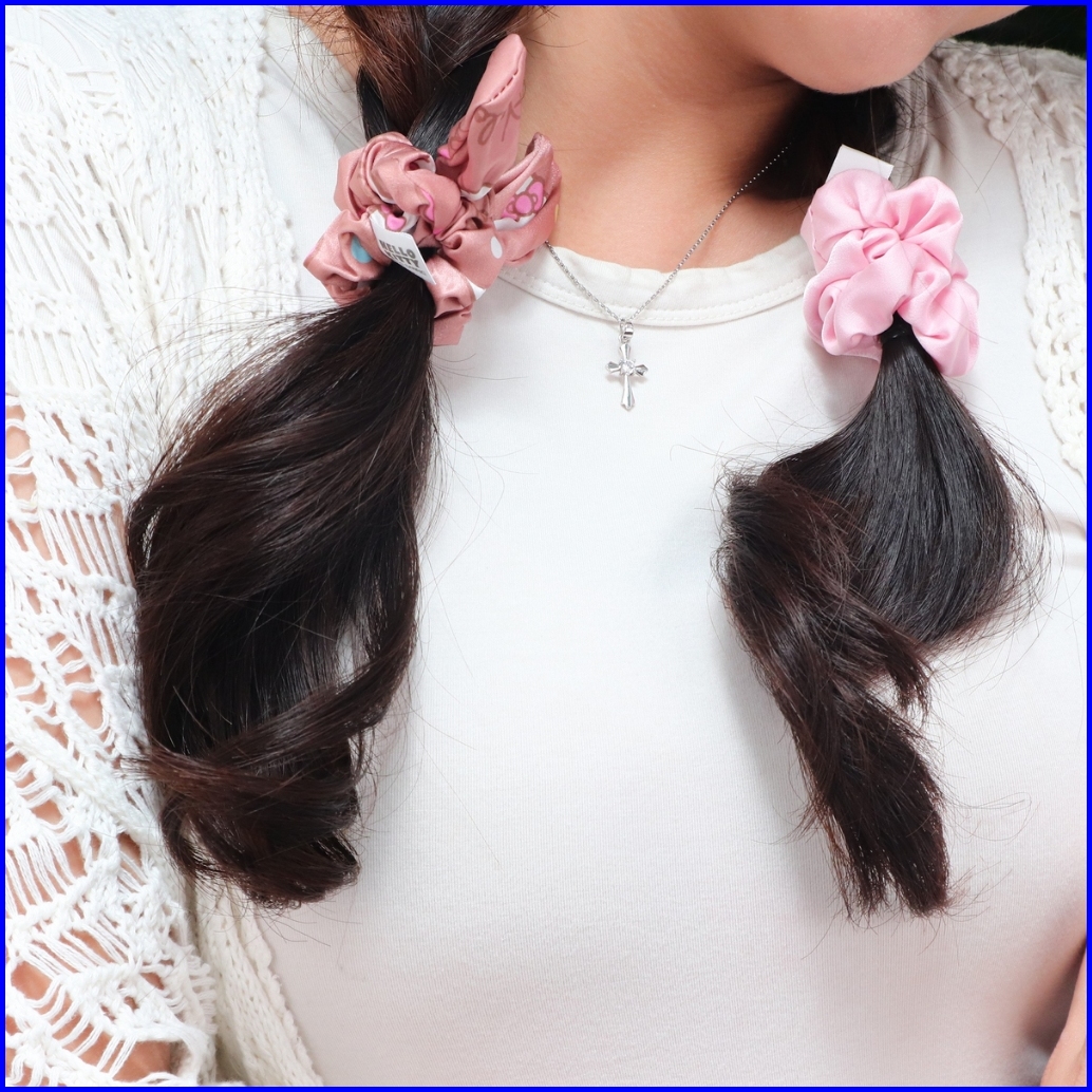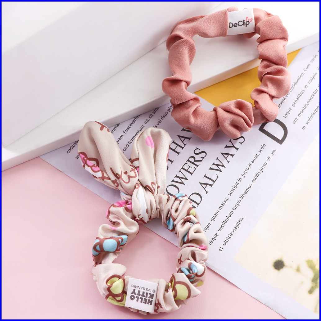 Declip X Sanrio Scrunchie Satin Kelinci Set Motif Hello Kitty Bow Polkadot