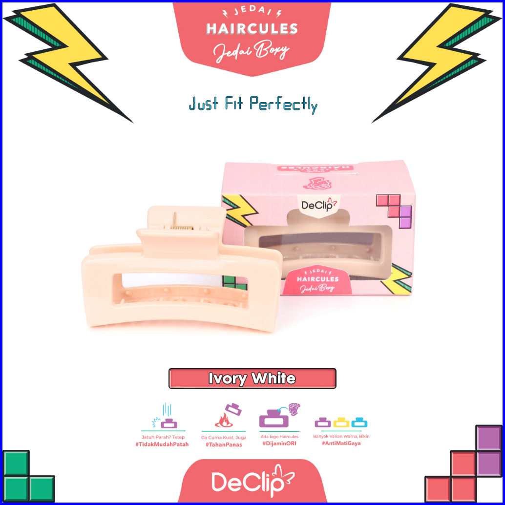 Declip Jedai Boxy Haircules Jepit Kotak Ukuran 9cm Warna Ivory White