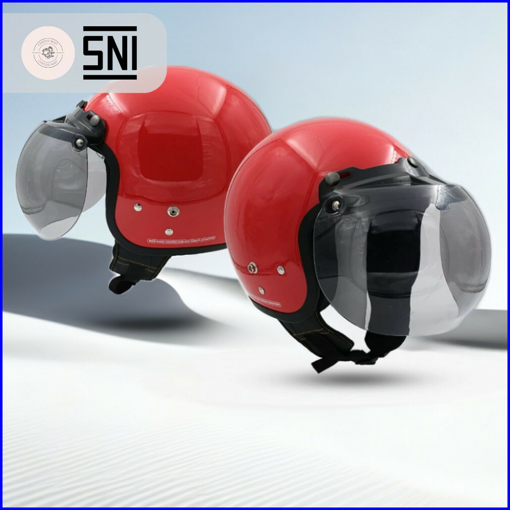 Helm Bogo Half Face Polos Dewasa Classic Retro Ori Hds Helmet Untuk Pria Wanita - Sni
