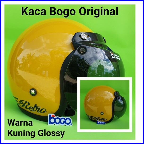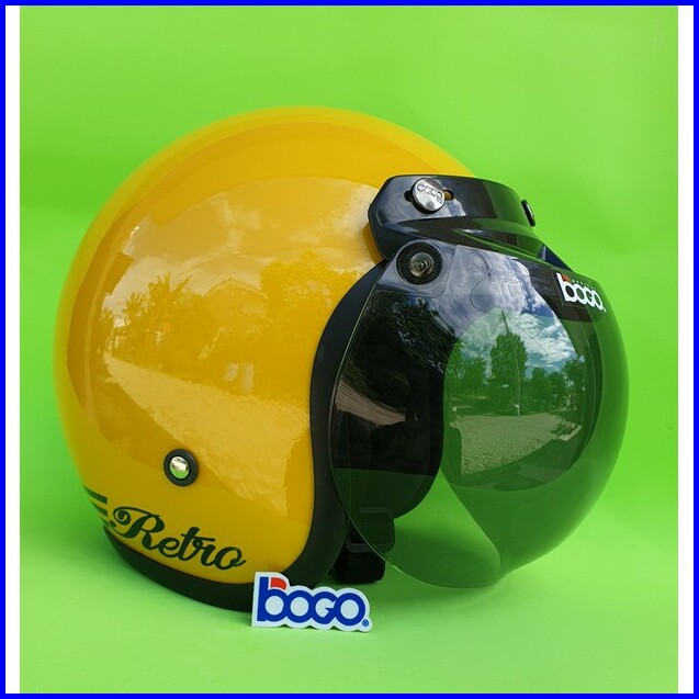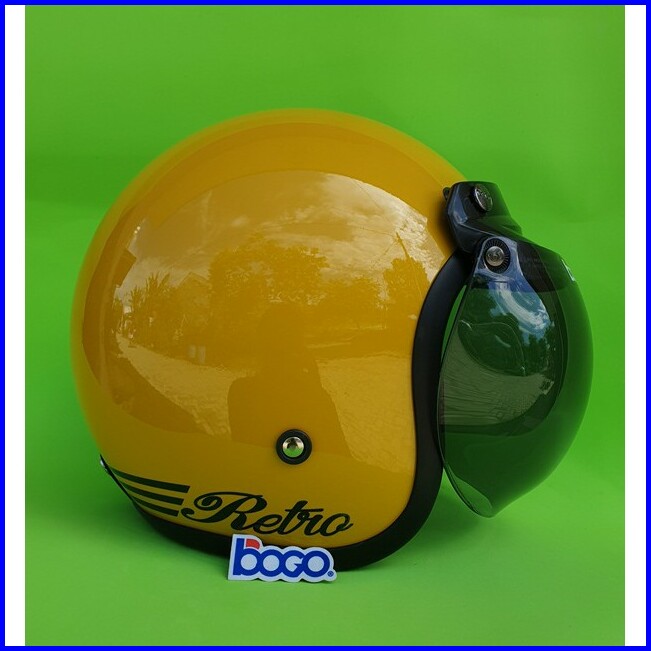 Helm Retro Dewasa Warna Kuning Glossy Dengan Kaca Bogo Original