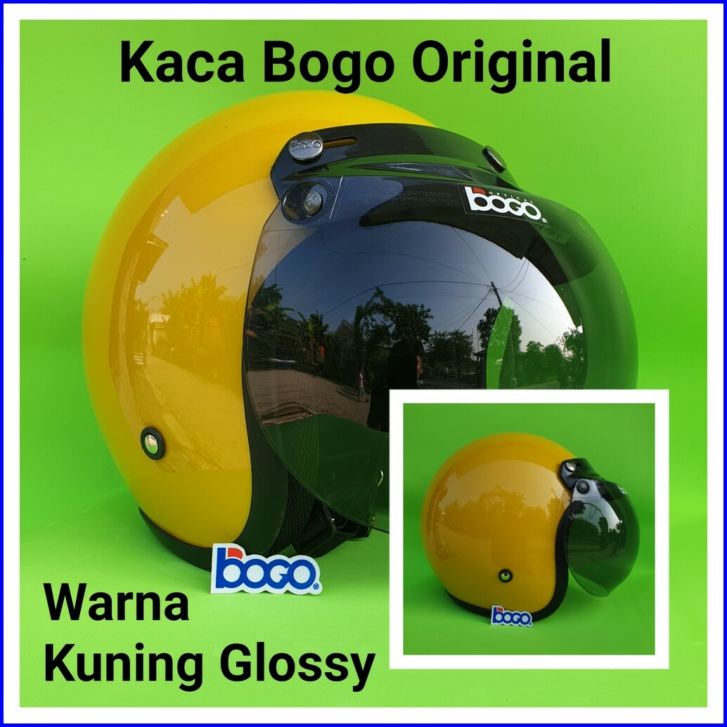 Helm Bogo Dewasa Cat Polos Warna Kuning Glossy Dengan Kaca Bogo Original