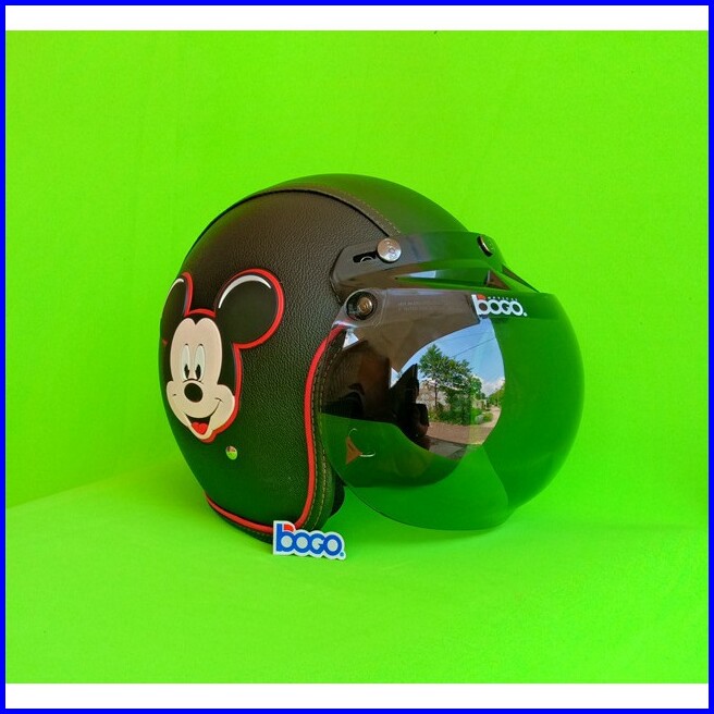 Helm Bogo Retro Kulit Dewasa Kaca Bogo Original Motif Mickey Mouse Tpr Hitam