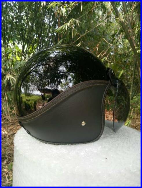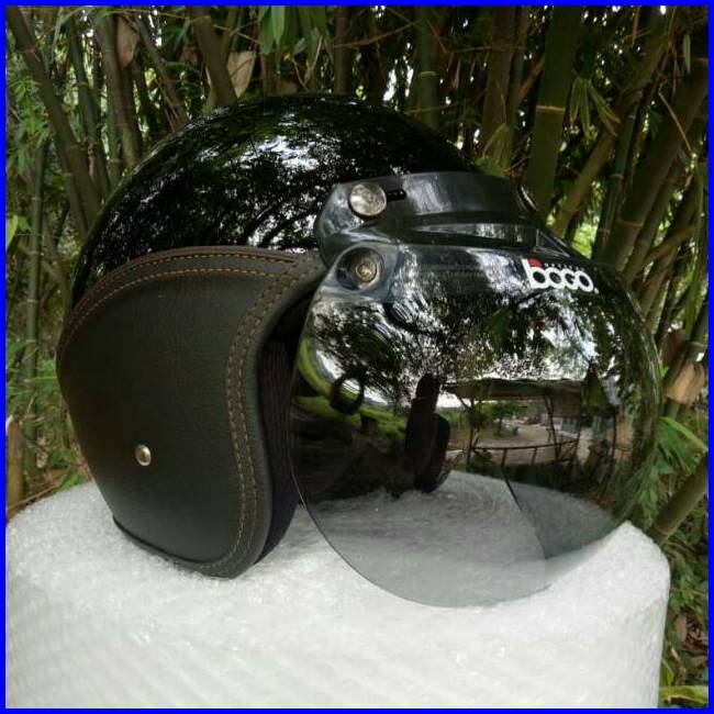 Helm Bogo Retro Kulit Dewasa Kaca Bogo Original Kombinasi Kulit Hitam Cat Hitam