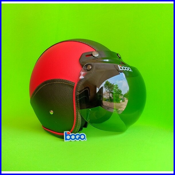 Helm Bogo Rerto Kulit Dewasa Kaca Bogo Original Warna Bawah Hitam Atas Merah