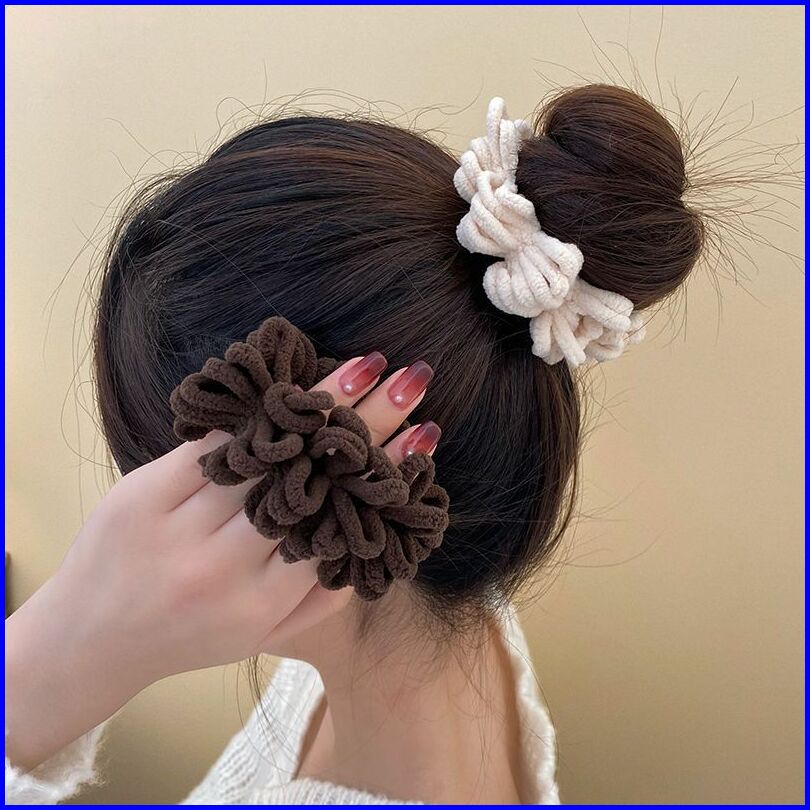 Caliloops Ikat Karet Rambut Wol Polos Rajut Tebal Wanita Korea Ranels