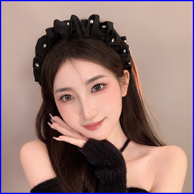 Caliloops Bando Bandana Scrunchies Korea Kerut Polos Berlian Lazo
