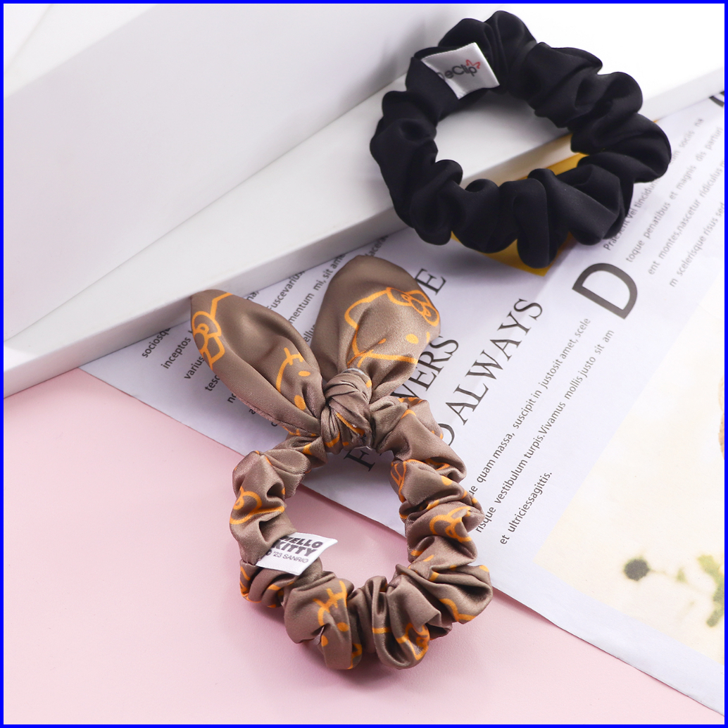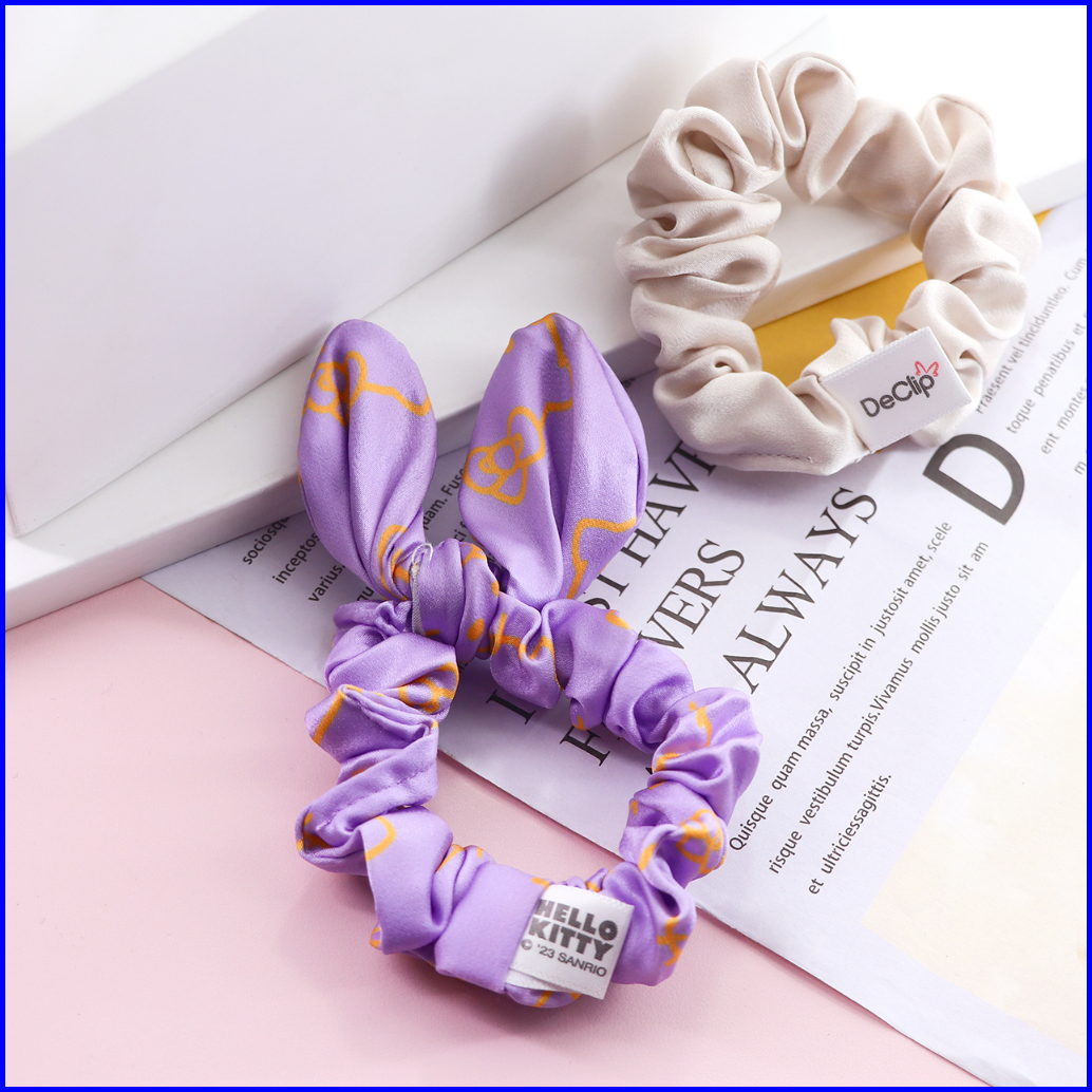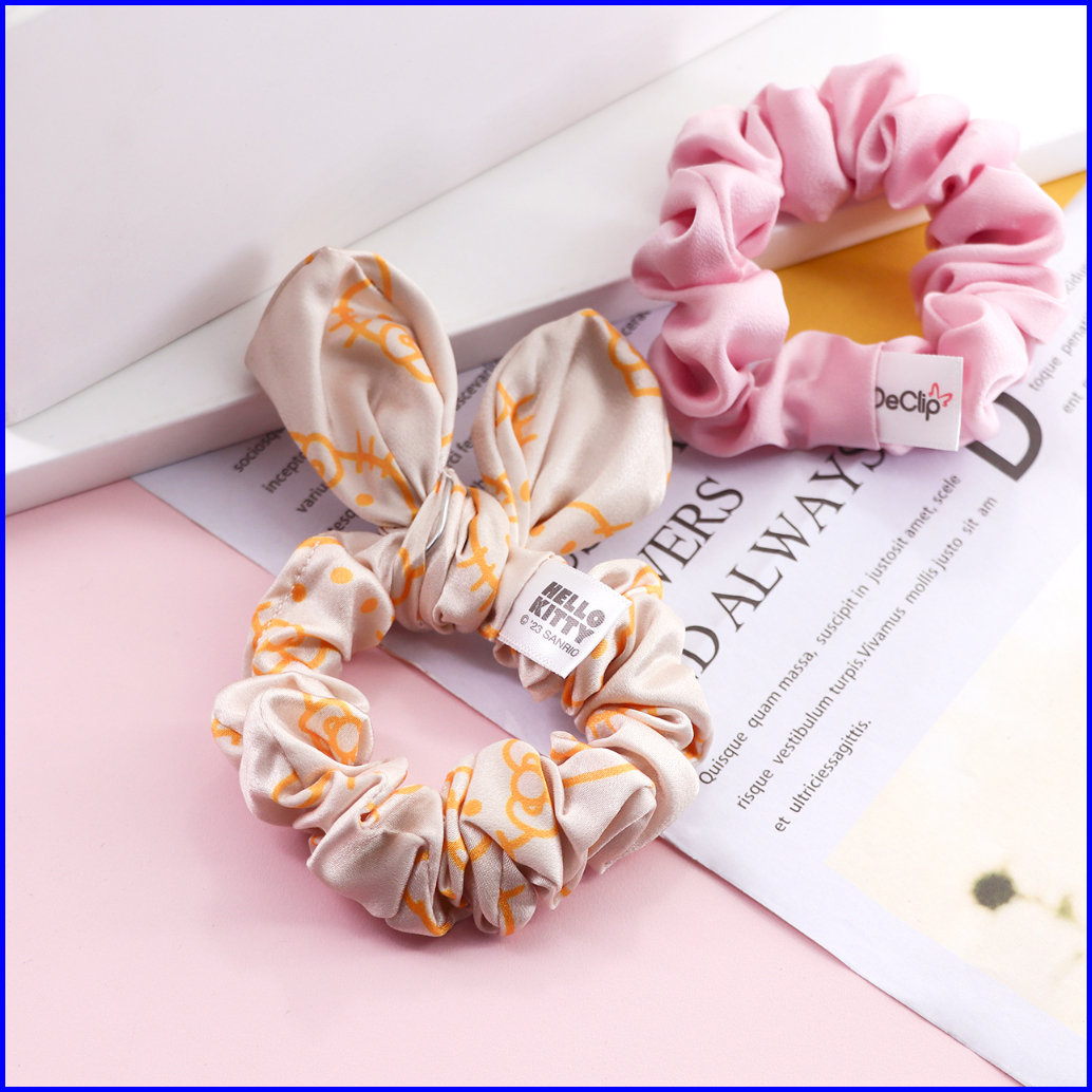 Declip X Sanrio Scrunchie Satin Kelinci Set Motif Hello Kitty Line Art