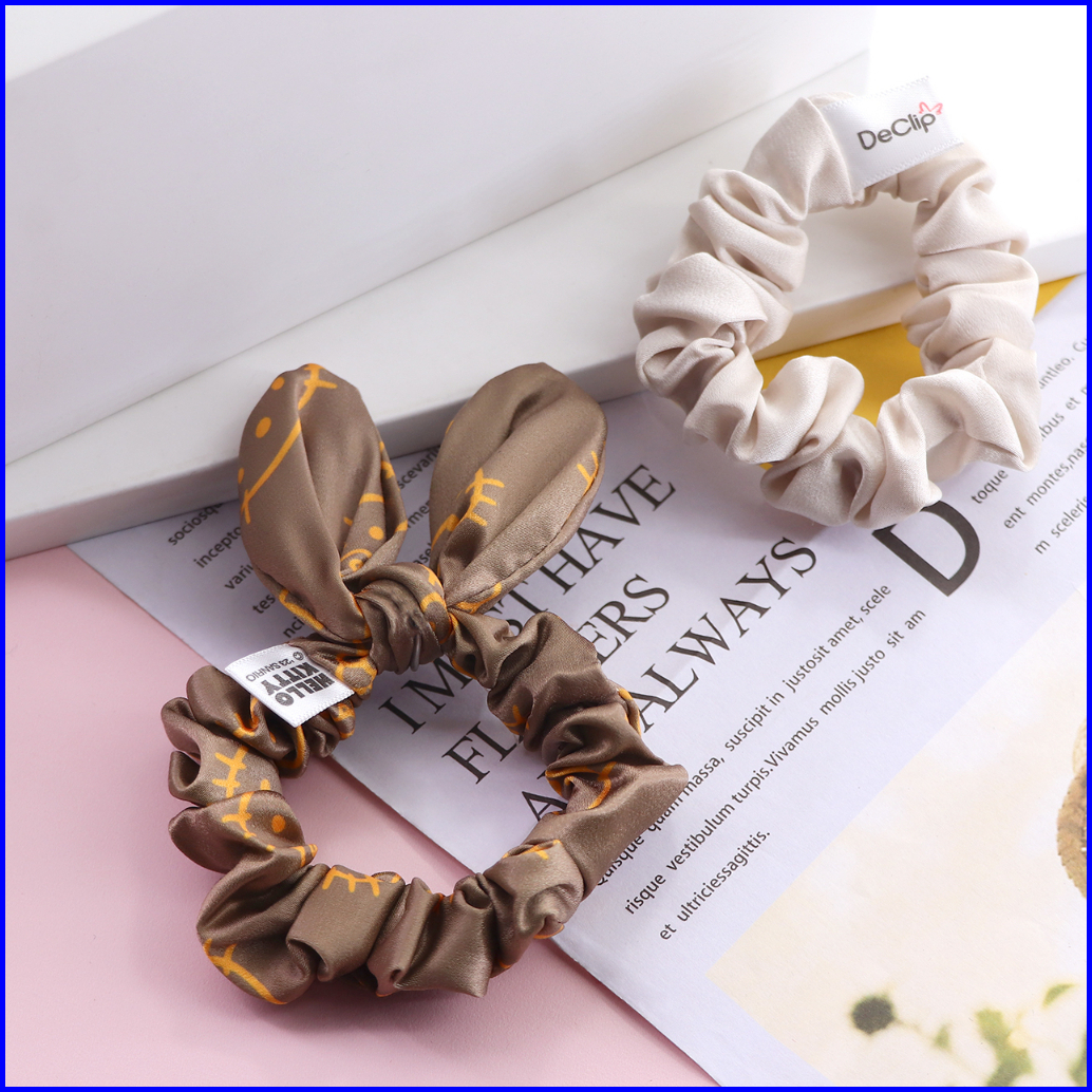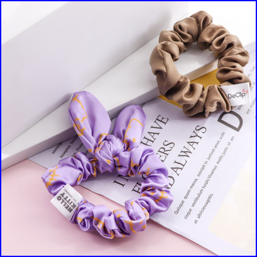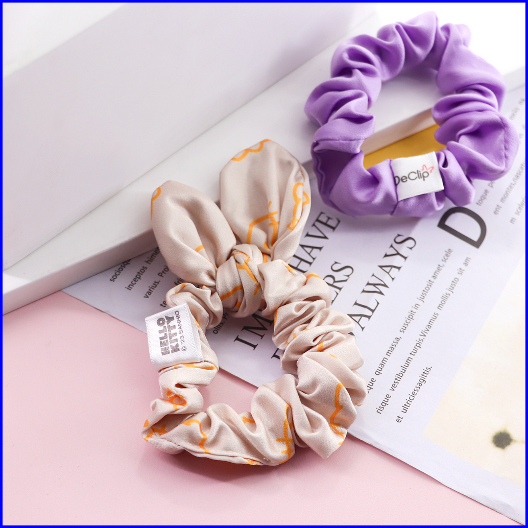 Declip X Sanrio Scrunchie Satin Kelinci Set Motif Hello Kitty Line Art