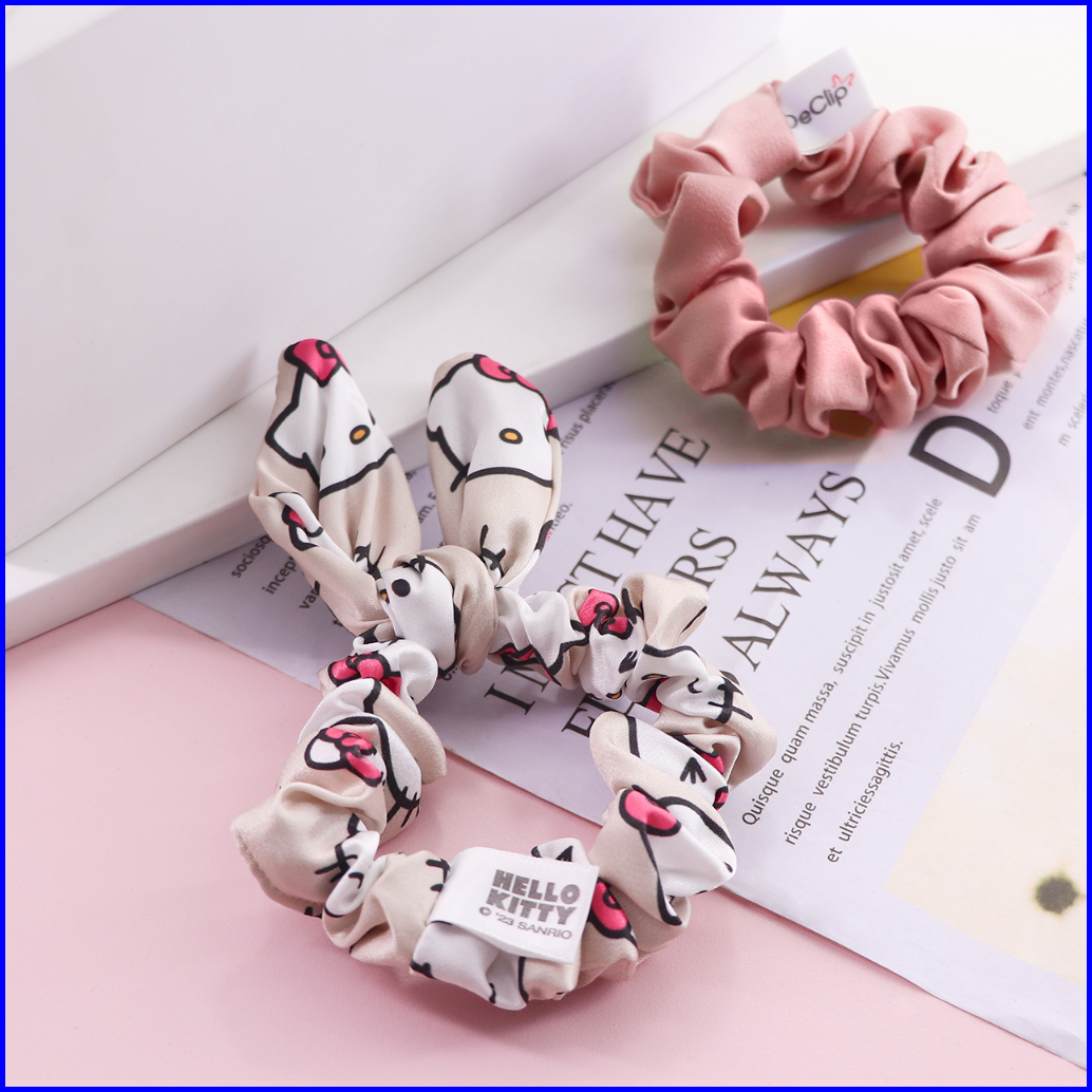 Declip X Sanrio Scrunchie Satin Kelinci Set Motif Hello Kitty