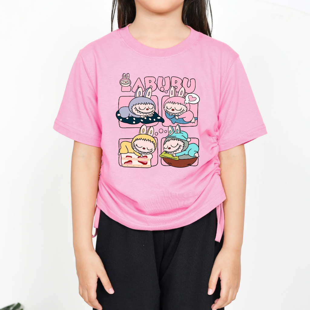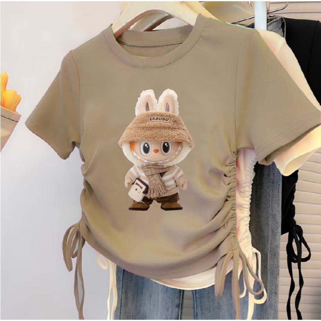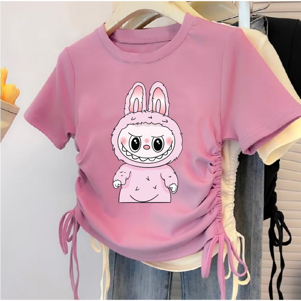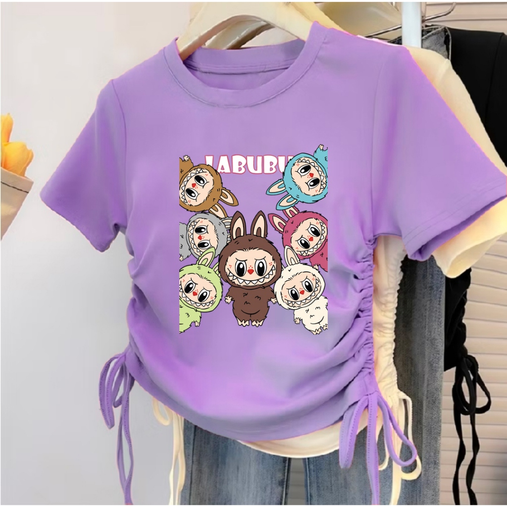 Kaos Serut Crop Top Anak Perempuan Kekinian Labubu | Atasan 5 6 7 8 9 10 11 12 13 14 Tahun