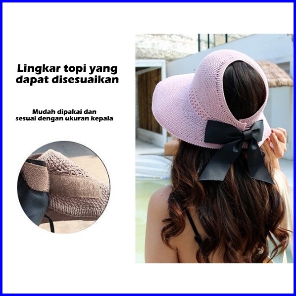 Topi Pantai Wanita Pelindung Sinar Matahari Import Rajut Sun Visor Hat Zt
