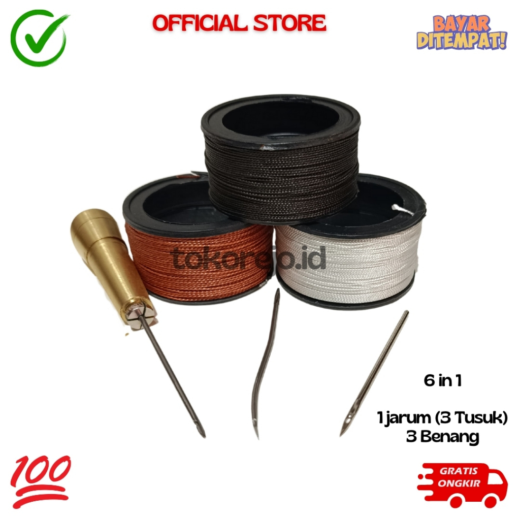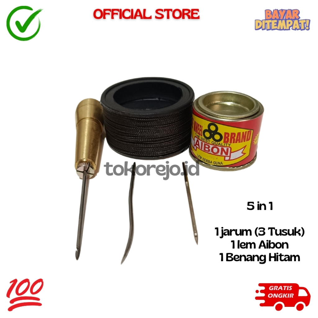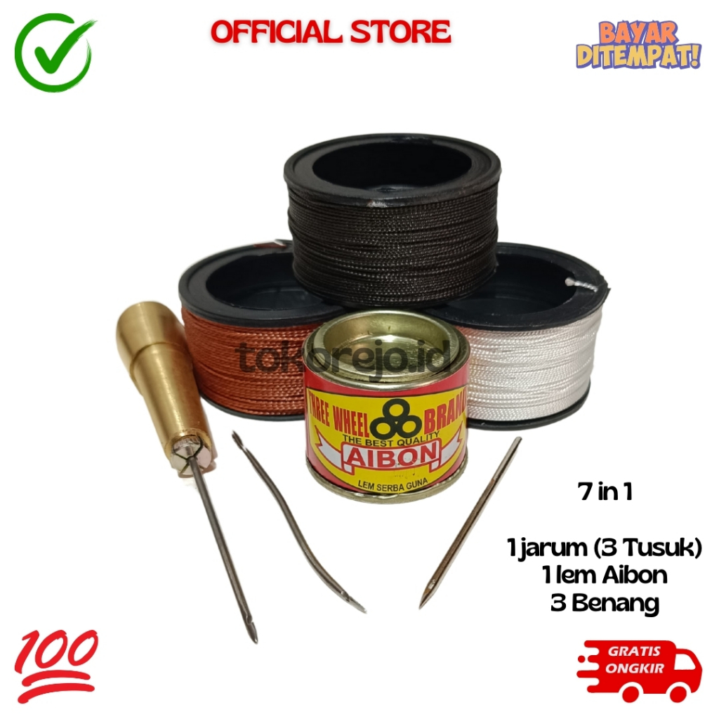 Alat Jahit Sol Sepatu Kulit + 3 Benang 1 1 Dan 1 Lem Reparasi Sepatu Kanvas D
