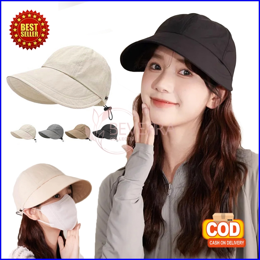 Topi Pantai Wanita Korea Visor Anti Uv Gaya Jepang Bucket Half Fashion Trendy Tepi Lebar Lipat