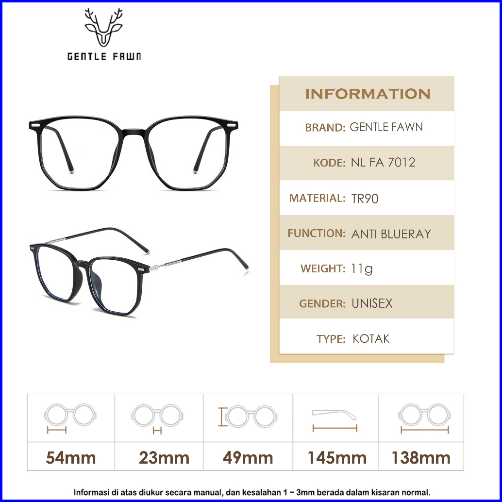 Gentle Fawn Kacamata Antiradiasi Blueray Bentuk Kotak Oversized New Style Bisa Minus Bahan Tr90 Fashion Wanita 7012