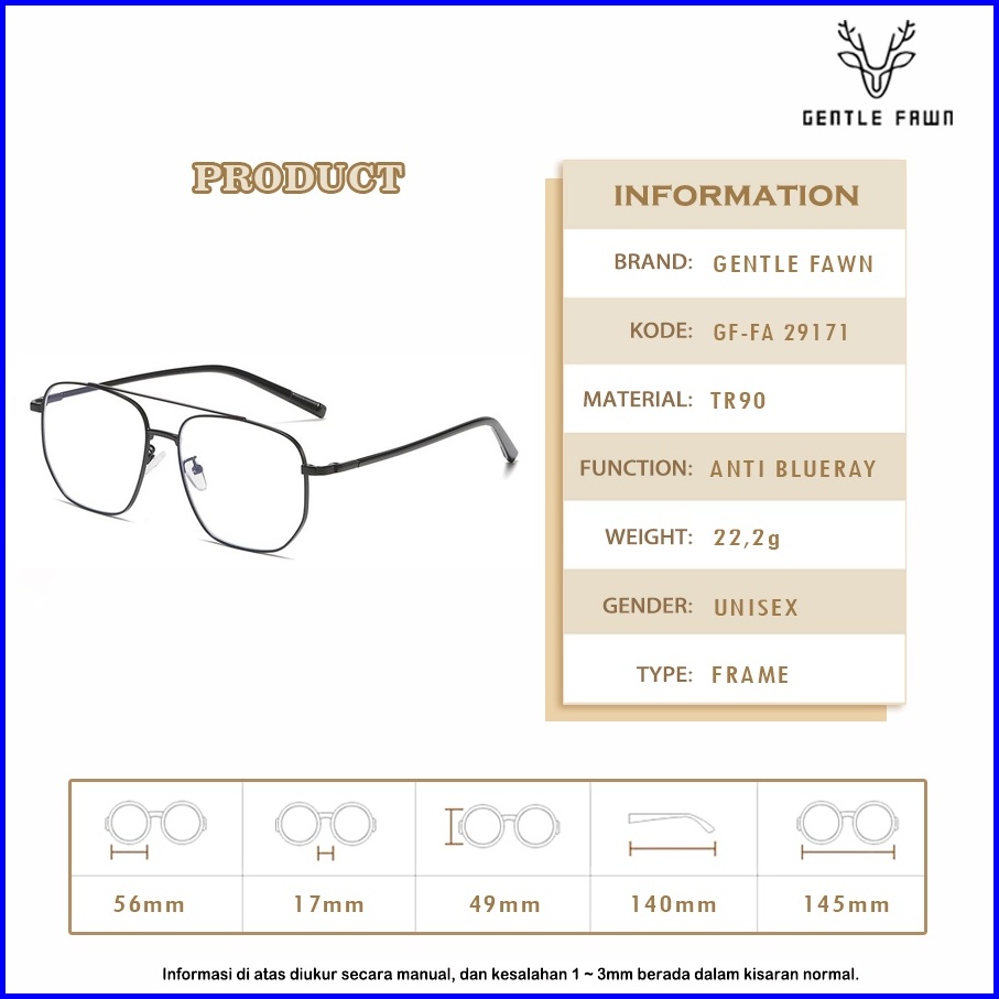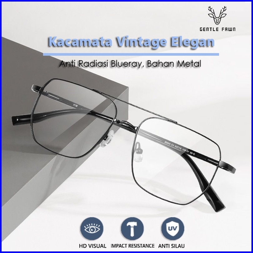 Gentle Fawn Kacamata Antiradiasi Blueray Metal Kotak Brigde Stylish Bisa Minus Antiradiasi Blueray Photocromic Bluecromi