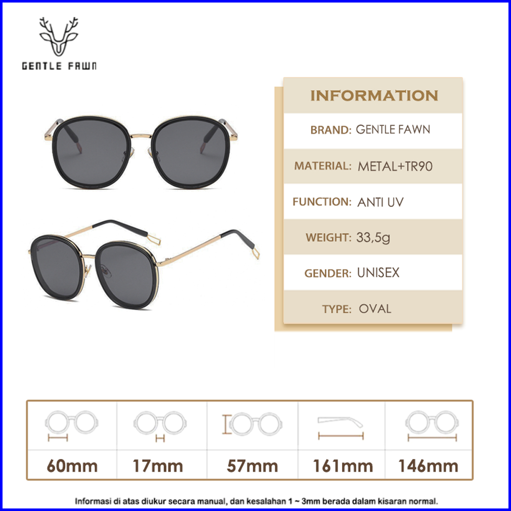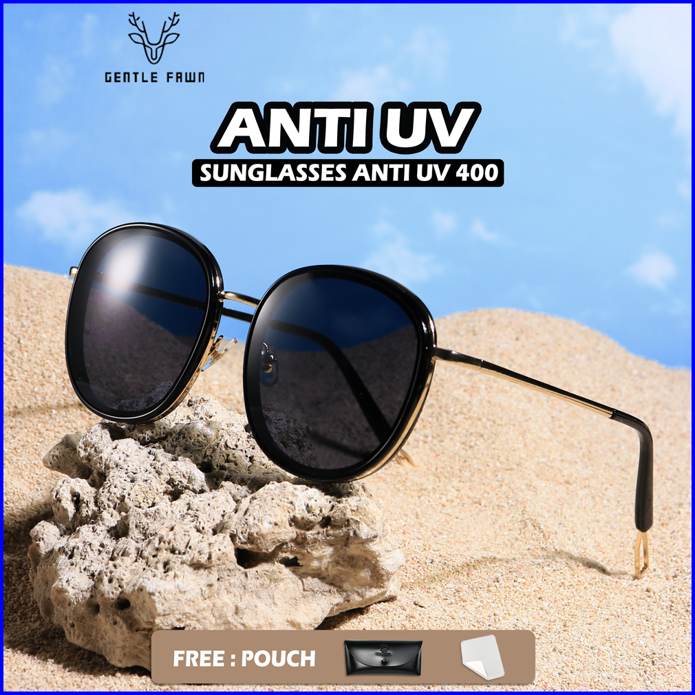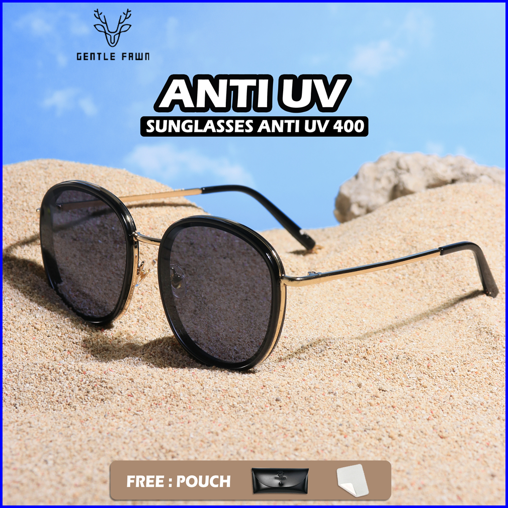Gentle Fawn Kacamata Hitam Sunglasses Anti Uv 400 Silau Model Bulat Oval Metal Tr Kekinian New Style Korea Fashion Pria