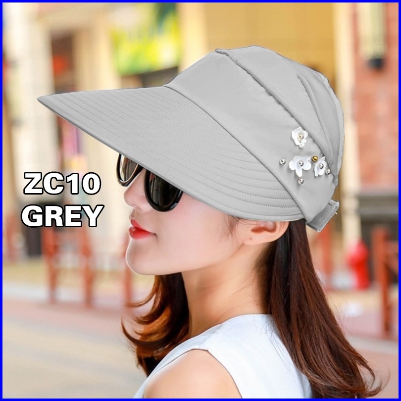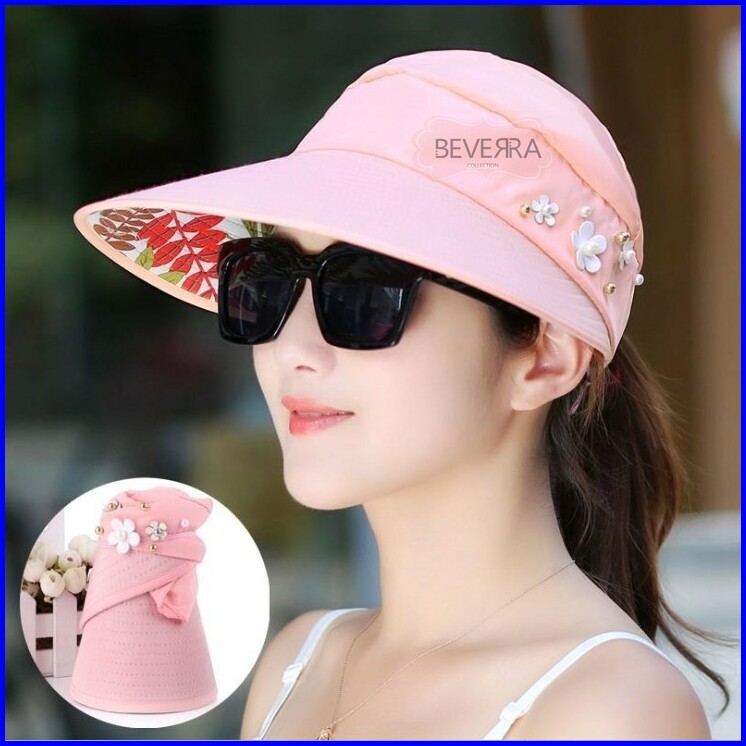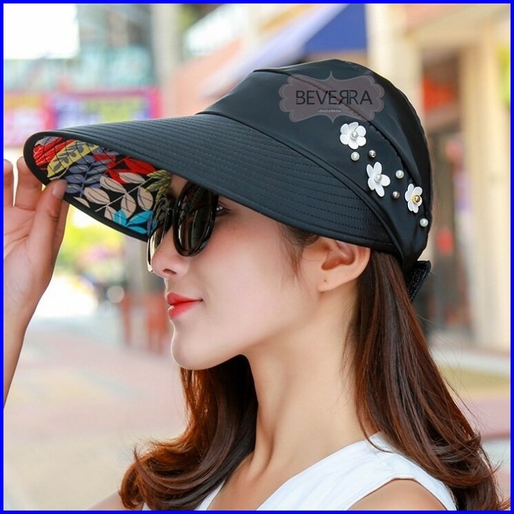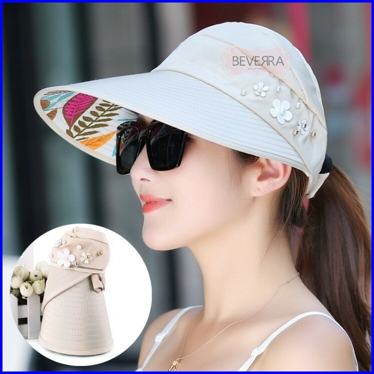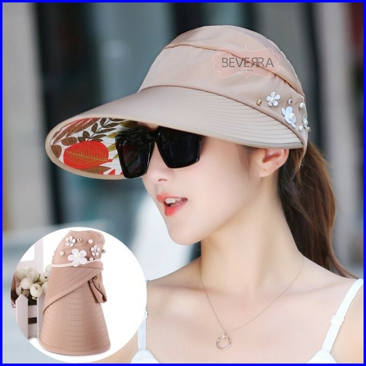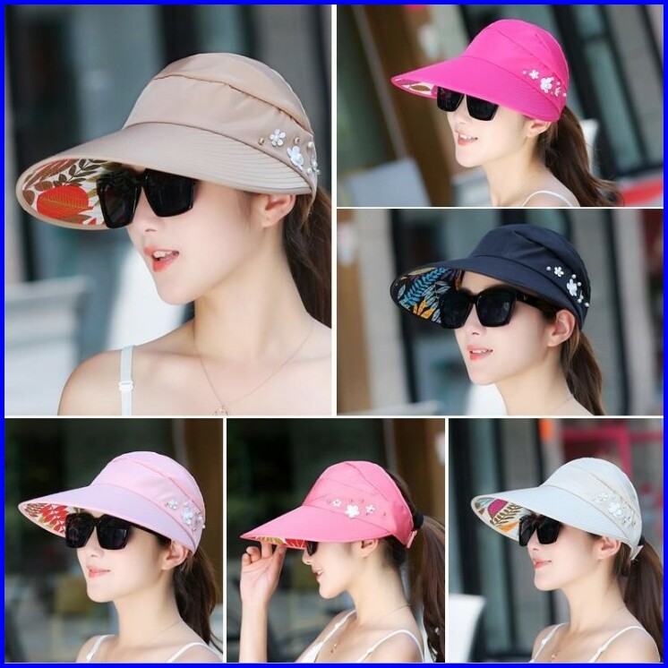 Topi Visor Pantai Outdoor Pelindung Anti Uv Summer Matahari Lipat Lebar Besar Wanita Pria Import- Zc
