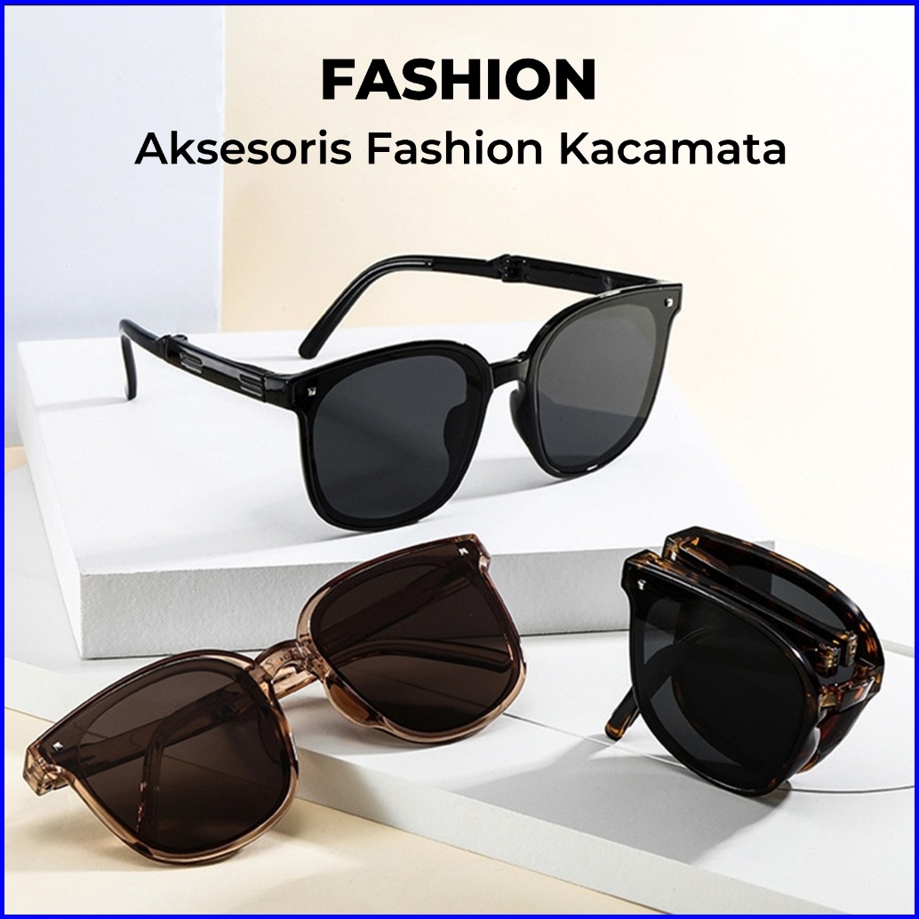 Kacamata Hitam Wanita Lipat Sunglasses Portable Fashion Korea Retro Anti Uv Matahari Import Kcm19