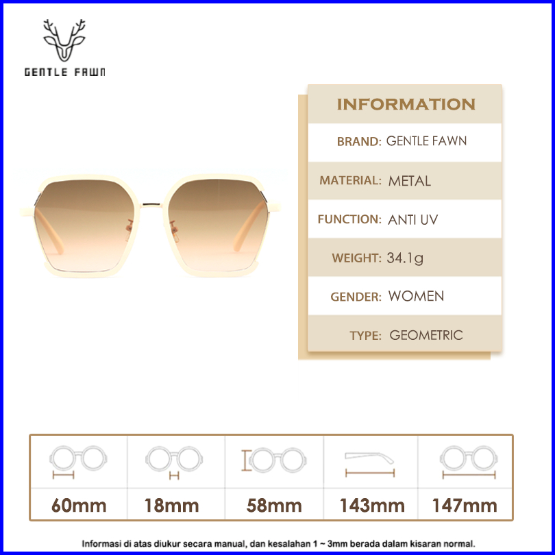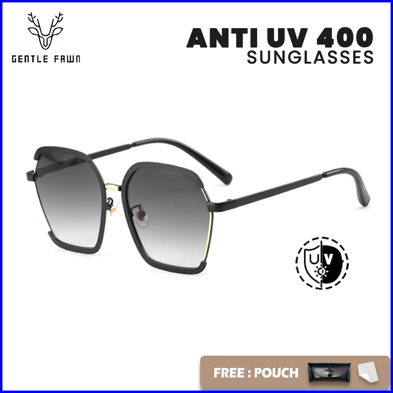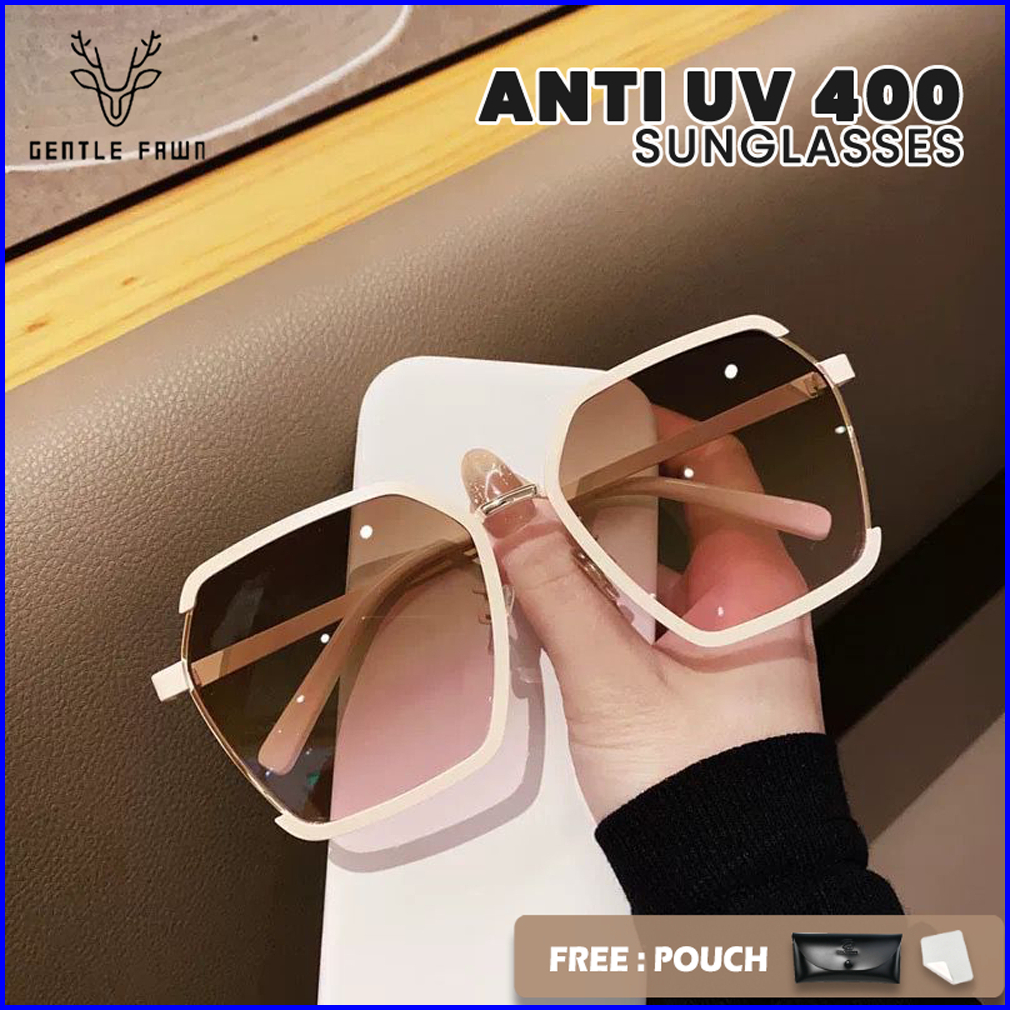 Gentle Fawn Kacamata Sunglasses Anti Uv Silau Matahari Bentuk Kotak Oversized Korean Style Fashion Wanita Bahan Metal Ku