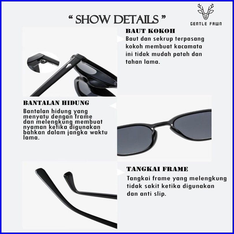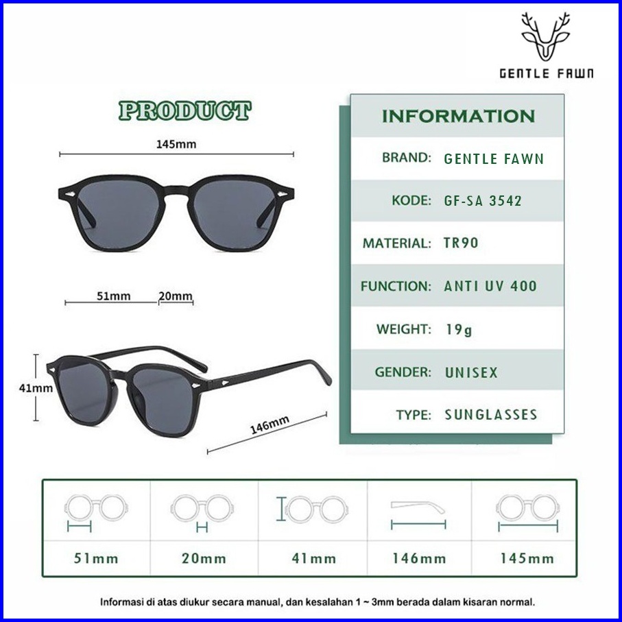 Gentle Fawn Sunglasses Kacamata Hitam Anti Uv 400 Protection Design Kotak Trendy Bahan Tr90 Terbaru Fashion Unisex 3542