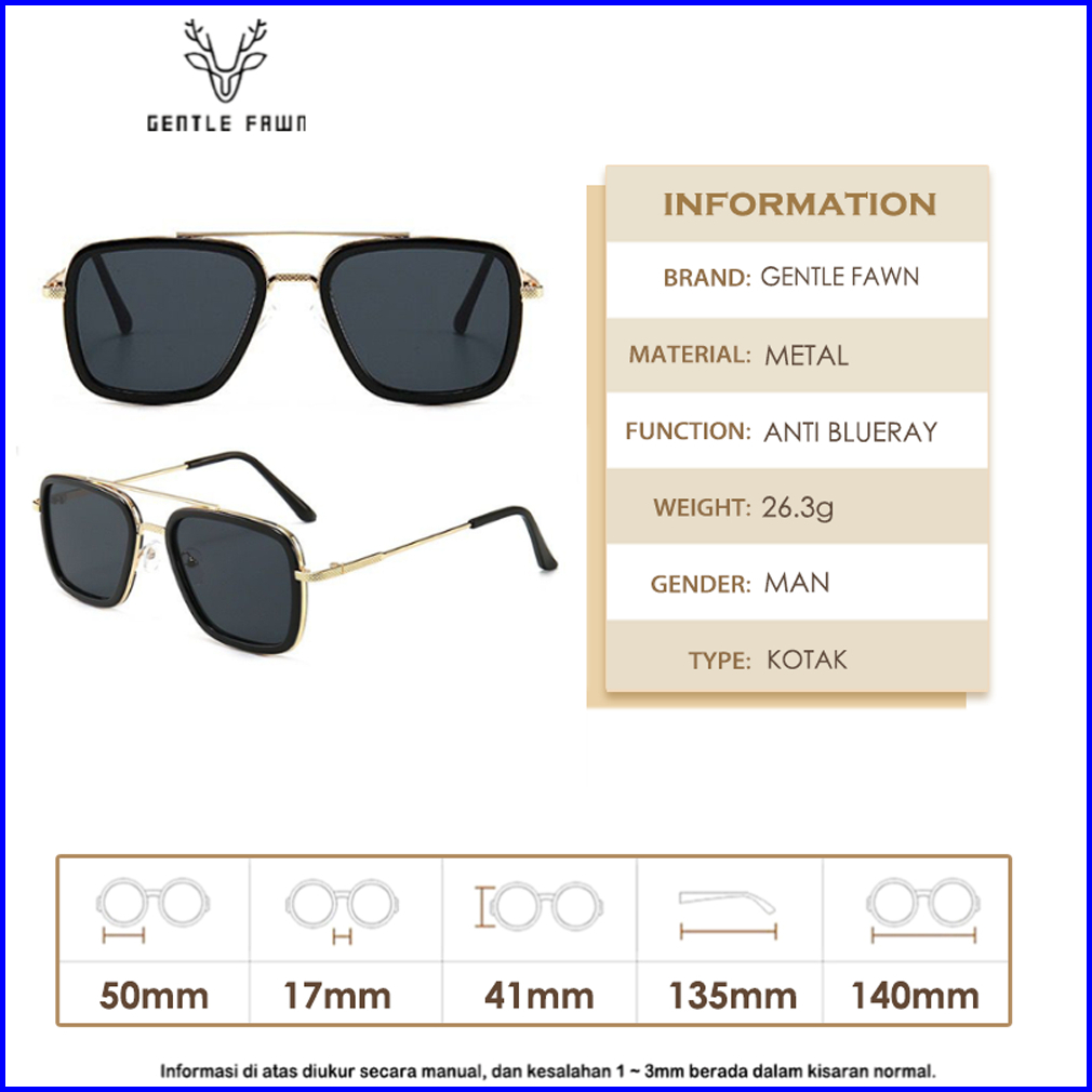 Gentle Fawn Kacamata Sunglasses Anti Silau Uv-400 Style Tony Stark Simple Pria Bentuk Kotak Fahion Keren Dan Kekinian 50