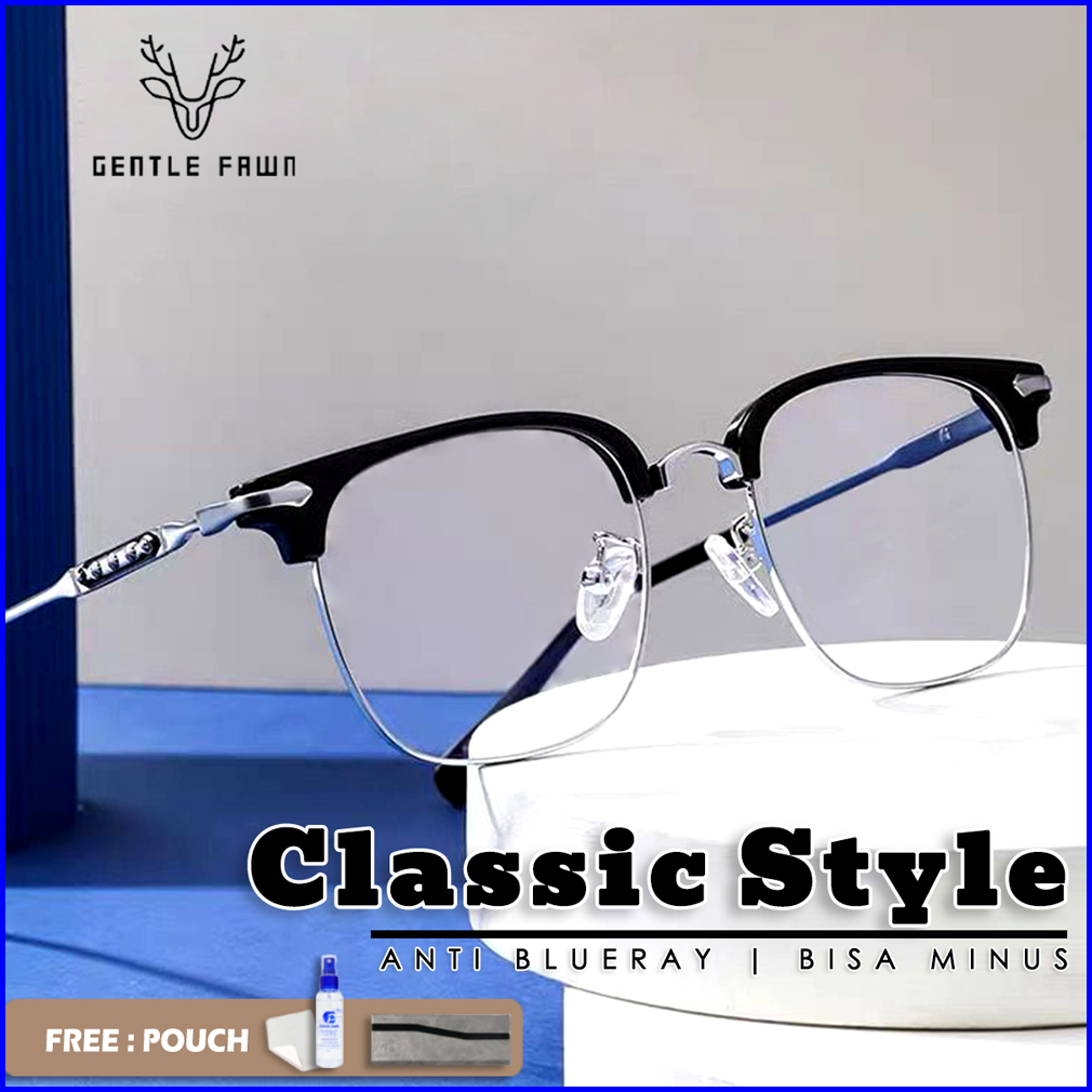Gentle Fawn Kacamata Anti Radiasi Blueray Sinar Biru Bisa Minus Pria Wanita Fashion Style Kotak Bahan Metal 0062