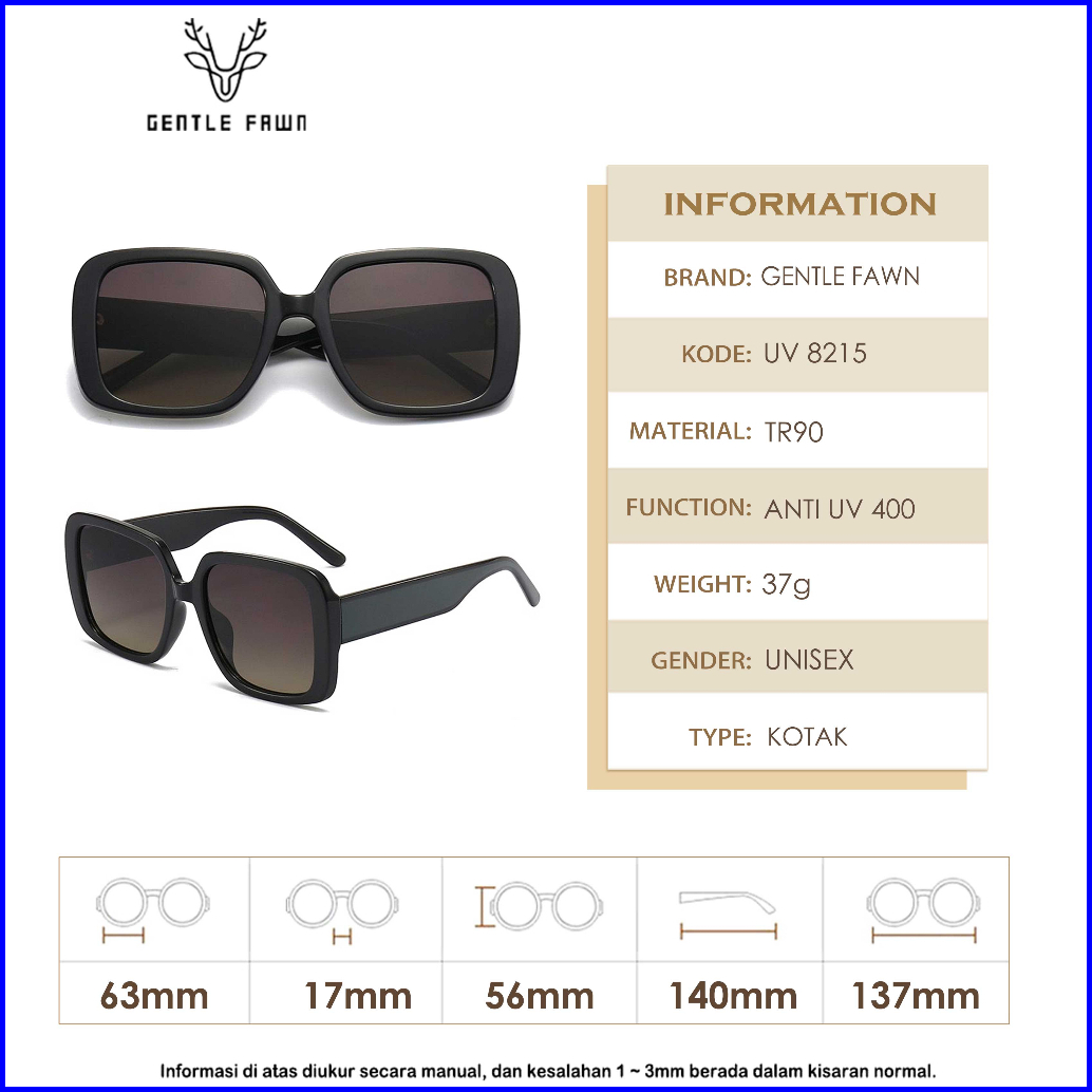 Gentle Fawn Kacamata Sunglasses Anti Uv 400 Cahaya Matahari New Korean Style Kekinian Bentuk Kotak Oversized 8215