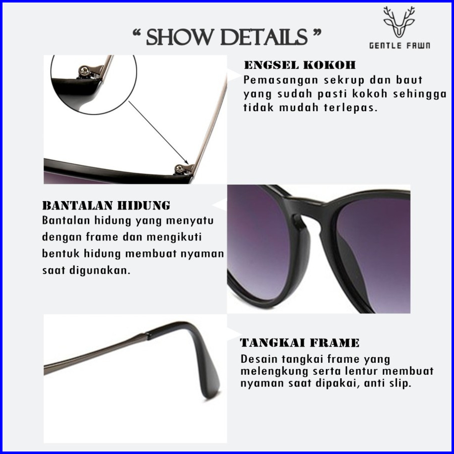 Gentle Fawn Kacamata Hitam Sunglasses Anti Uv 400 Bahan Tr90 Metal Design Simple Fashion Pria Wanita Style 1567