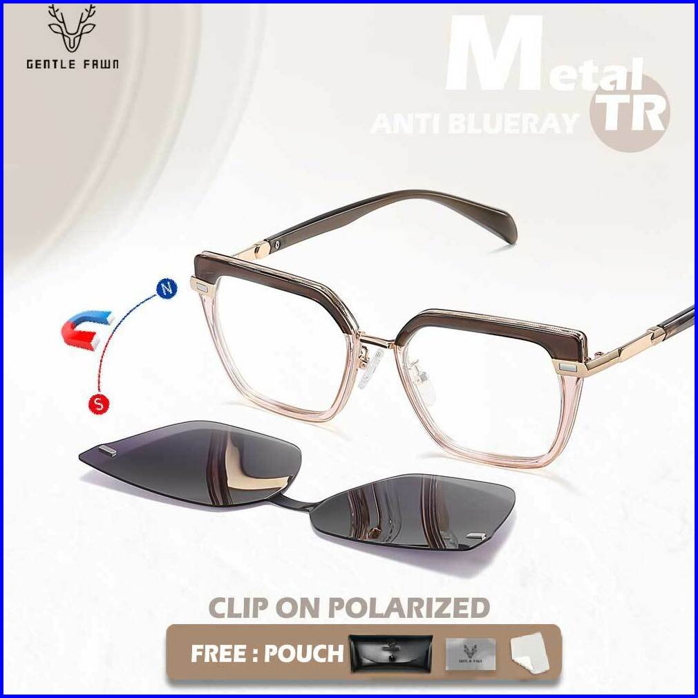 Gentle Fawn Kacamata Antiradiasi Blueray Clip On Polarized Anti Uv Lensa Hitam Fashion Wanita Bentu Kotak Semi Cat Eye 3