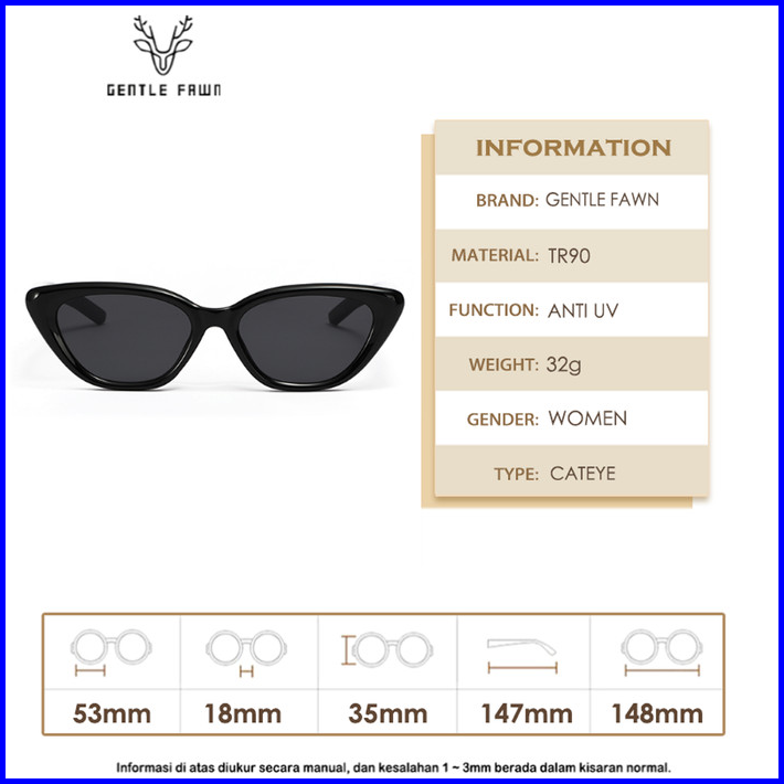 Gentle Fawn Kacamata Sunglasses Anti Uv Silau Fashion Wanita Korean Style Bentuk Cat Eye Kekinian Bahan Tr90 19311 23031