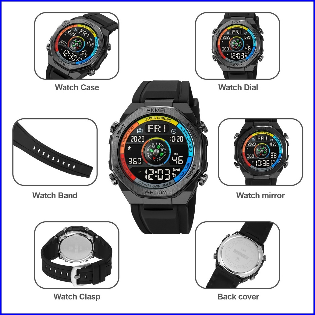Skmei 2209 Jam Tangan Pria Digital Pedometer Compass Anti Air 5 Bar Mgos