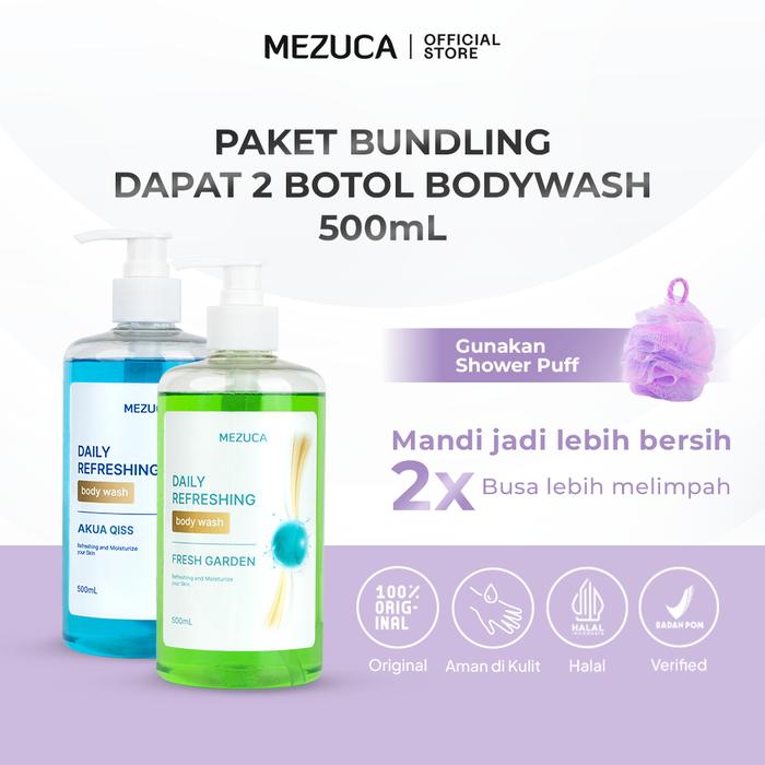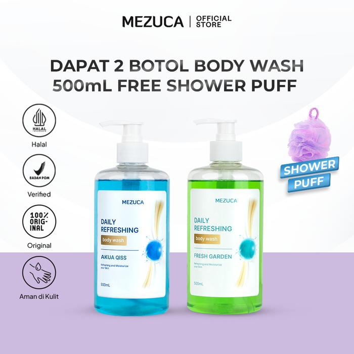 Dapat 2 Sabun Mandi Mezuca Daily Refreshing Bodywash Free Shower Puff Original