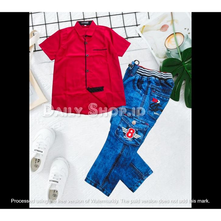Setelan Kemeja Polos Anak Laki-laki Dan Celana Jeans Cargo Panjang Buat Usia Anak 1Sampai 12 Tahun