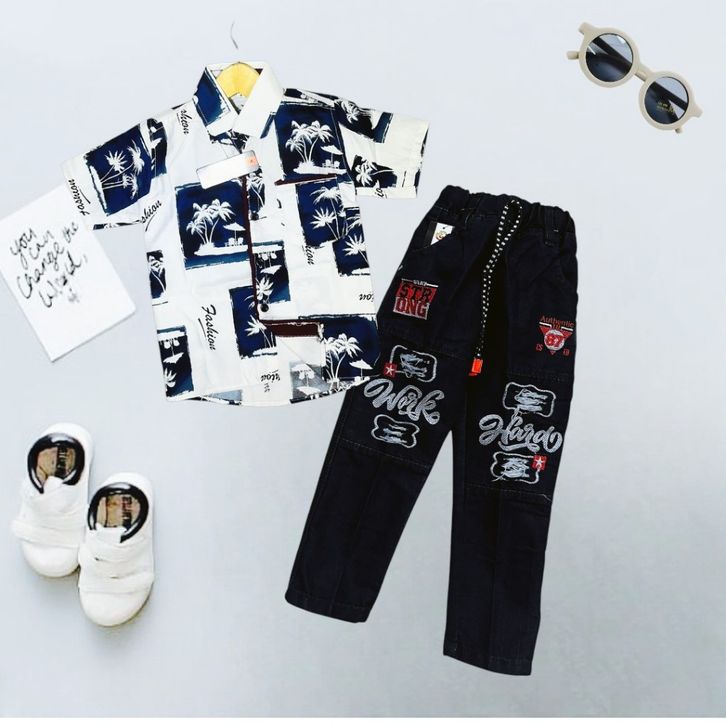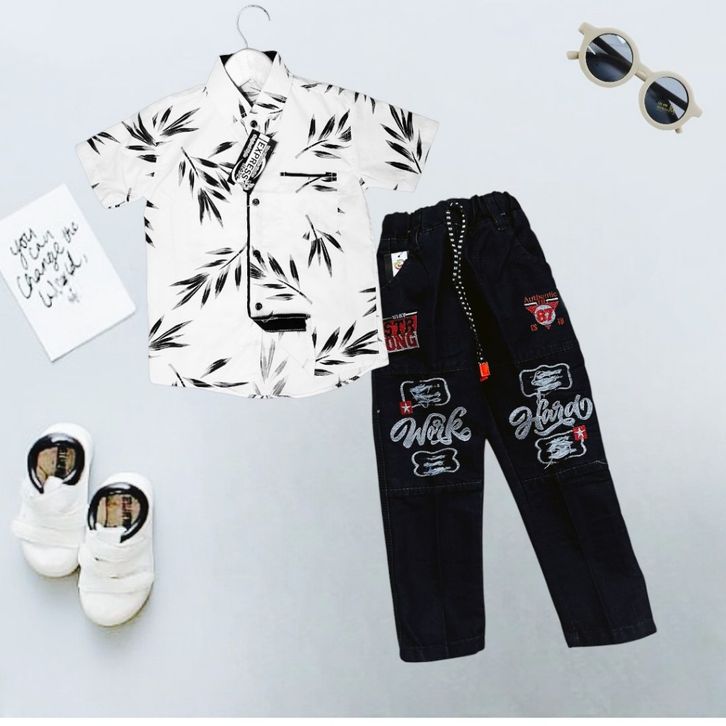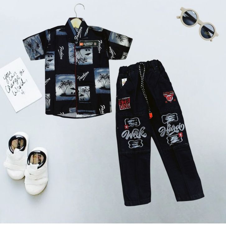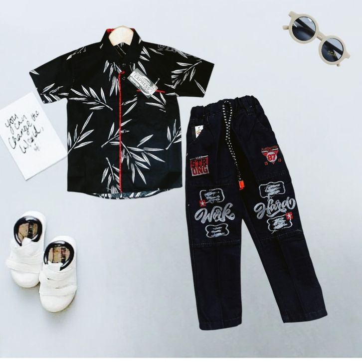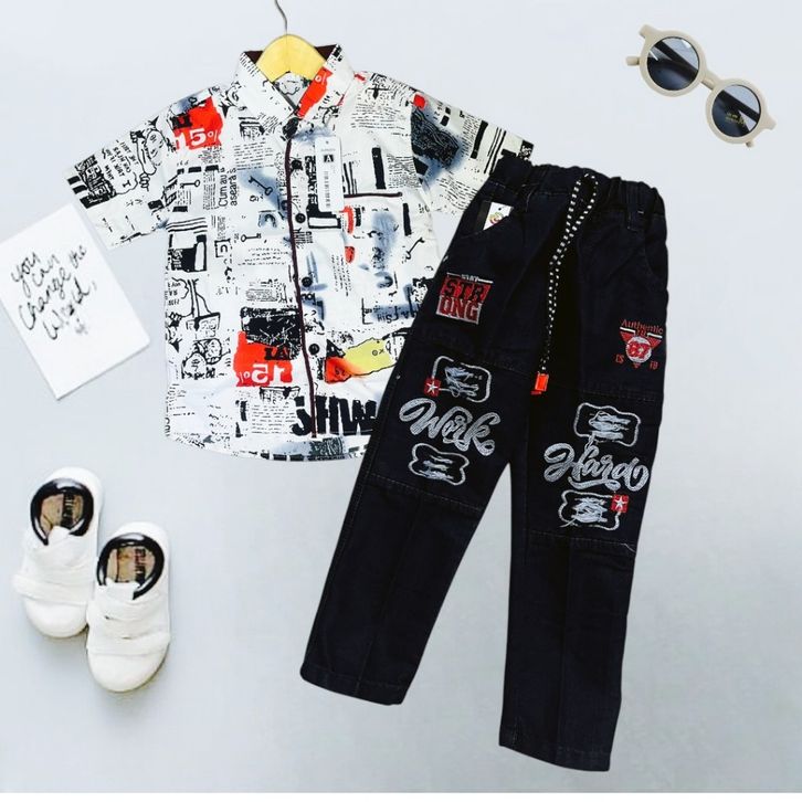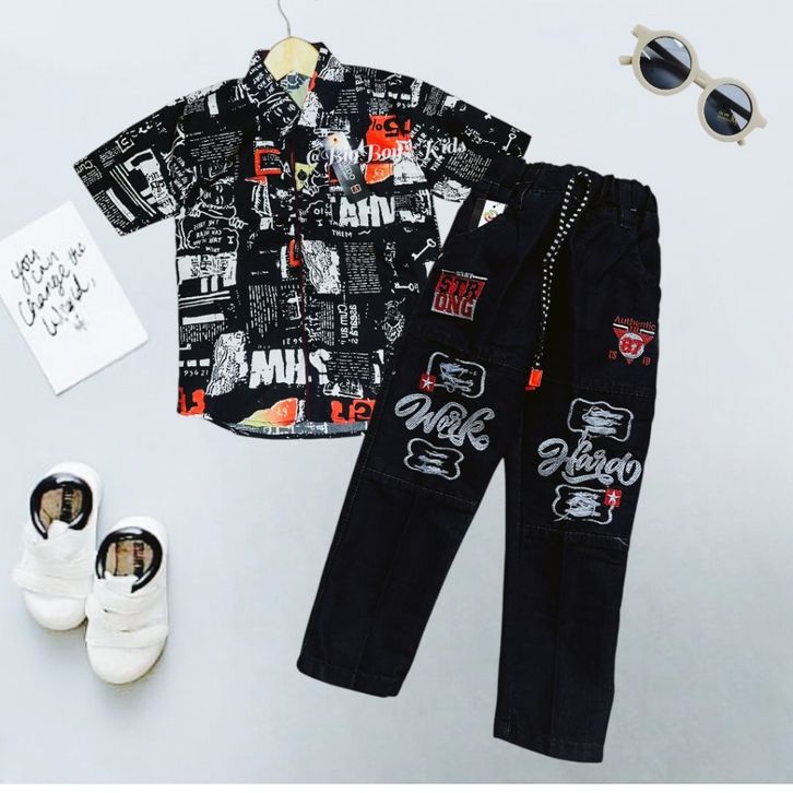 Setelan Kemeja Anak Laki-laki Bermotif Celana Denim Sobek Hitam Panjang Usia Anak 1-12 Tahun